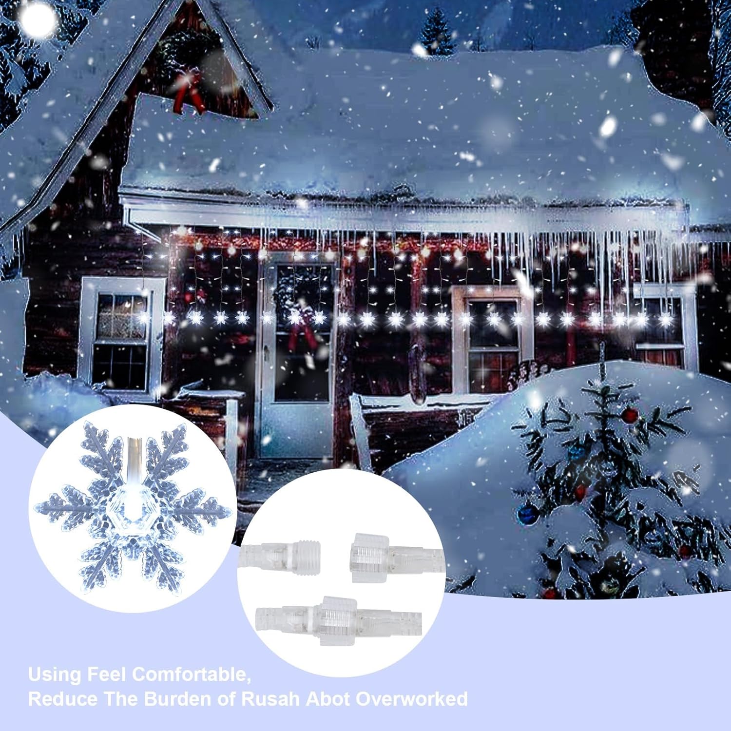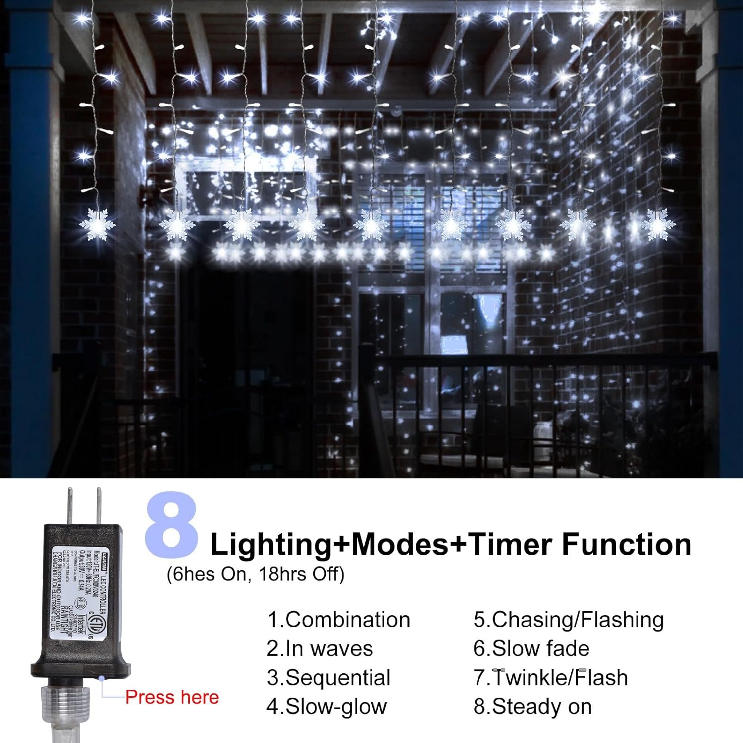 【8 Lighting Modes & Remote Control】The string lights come with a remote control, allowing you to easily turn the lights on and off, select from 8 flashing modes, adjust brightness. LED Fairy Snowflake Lights Have 8 Mode: Combination, Wave, Continuous, Slo-glo, Chase/Flash, Slow Fade, Blink/Flash, Steady On. The battery compartment has a simple button to control the light mode or use the remote control.
