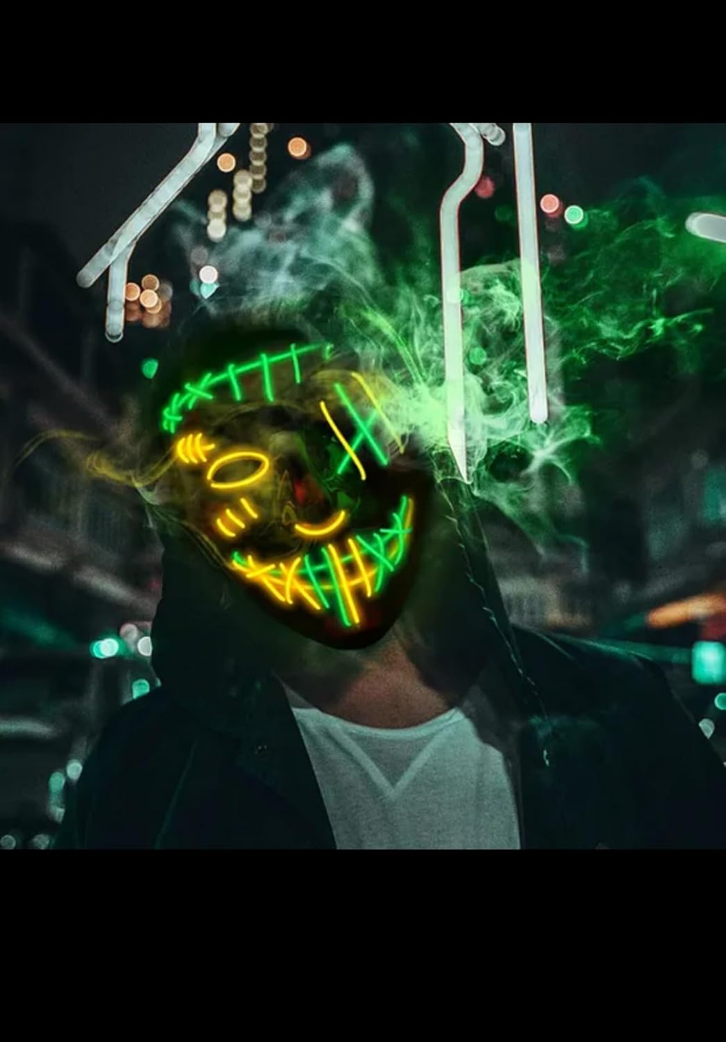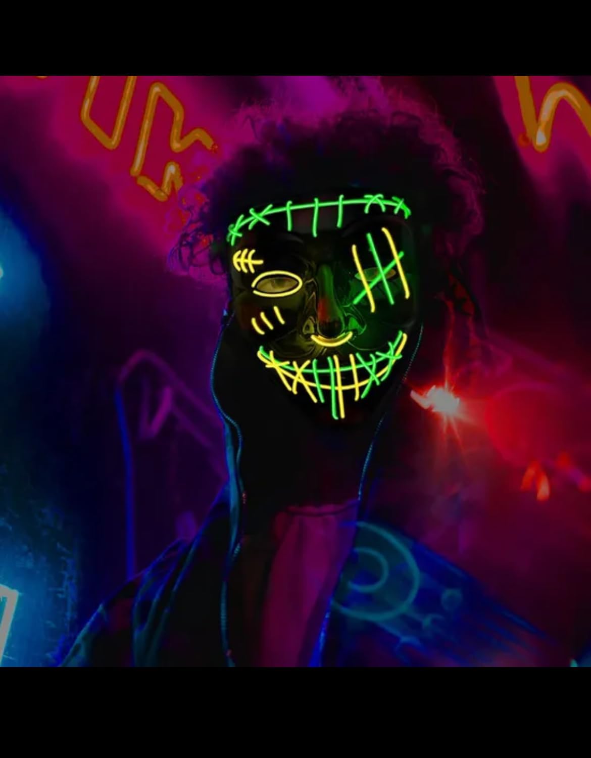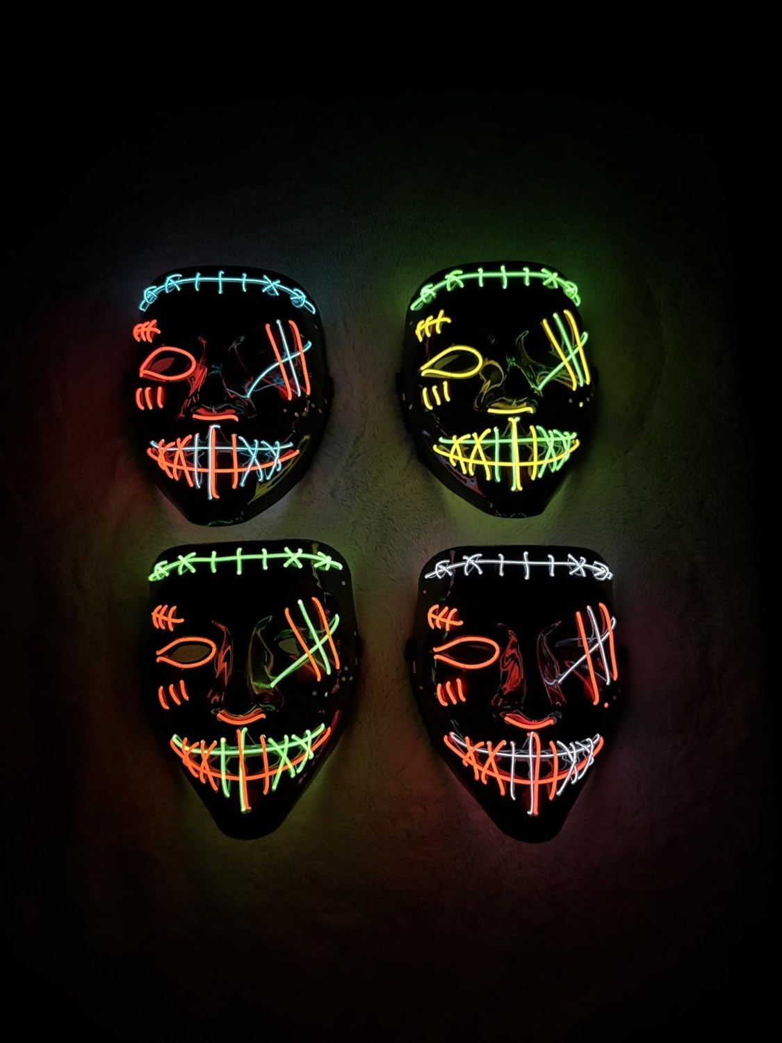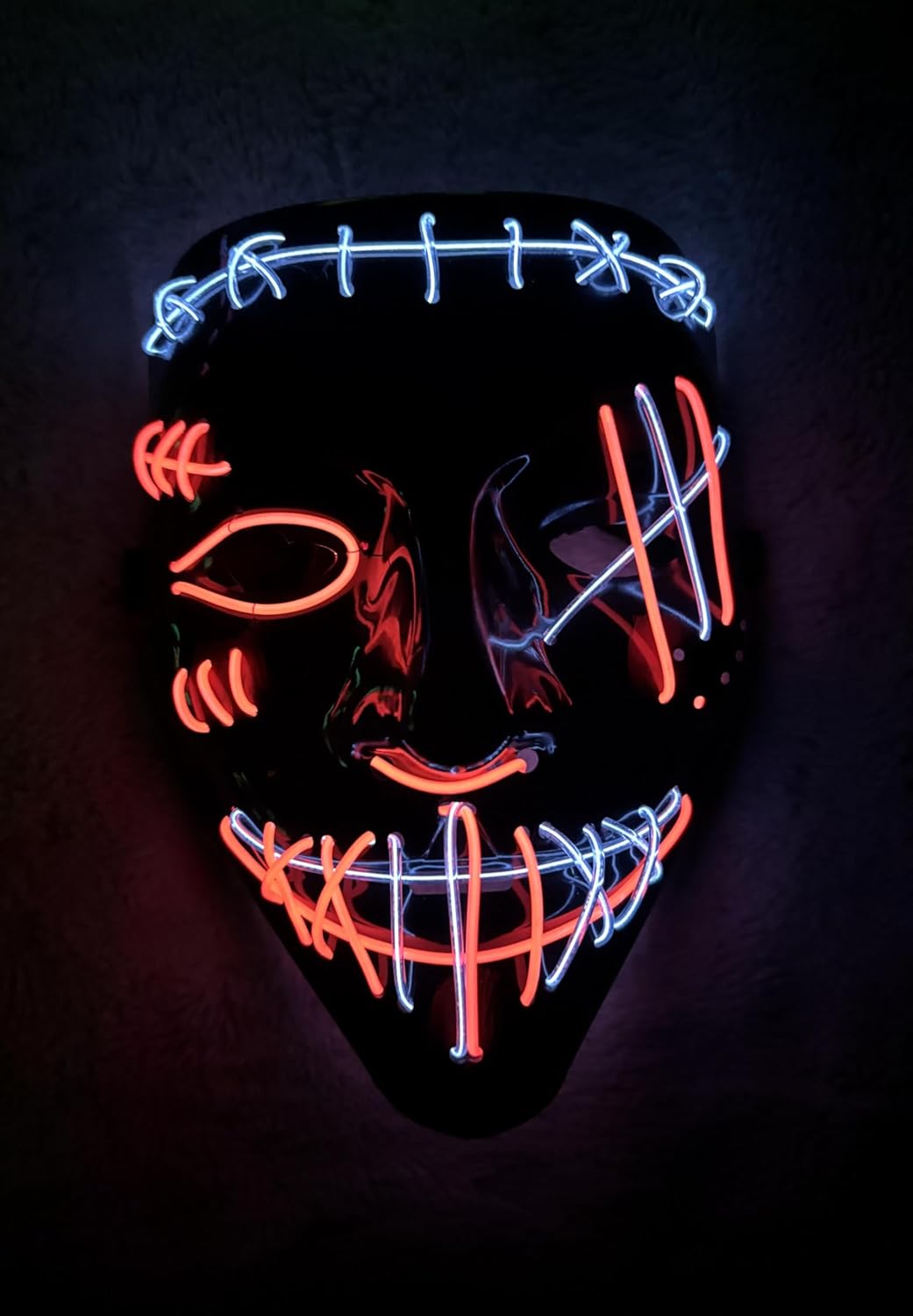 Transform your Halloween or costume party experience with this striking LED mask featuring captivating neon-style illumination. The mask showcases an impressive array of multi-coloured LED lights creating an eerie, attention-grabbing effect against its black base. With three distinct lighting modes, you can switch between different patterns to match your mood or the party atmosphere. The mask features various colour combinations including vibrant blue, red, green, and yellow elements arranged in a distinctive pattern. Its convenient on/off switch allows easy control, while the different flash settings add dynamic visual interest to your costume. Perfect for Halloween celebrations, costume parties, festivals, or any event where you want to make a memorable impression. The mask’s design provides both dramatic visual impact and practical wearability. Please note that batteries are required for operation (battery specifications provided separately). The durable construction ensures the mask can be used for multiple events, while its universal size accommodates most adults comfortably.