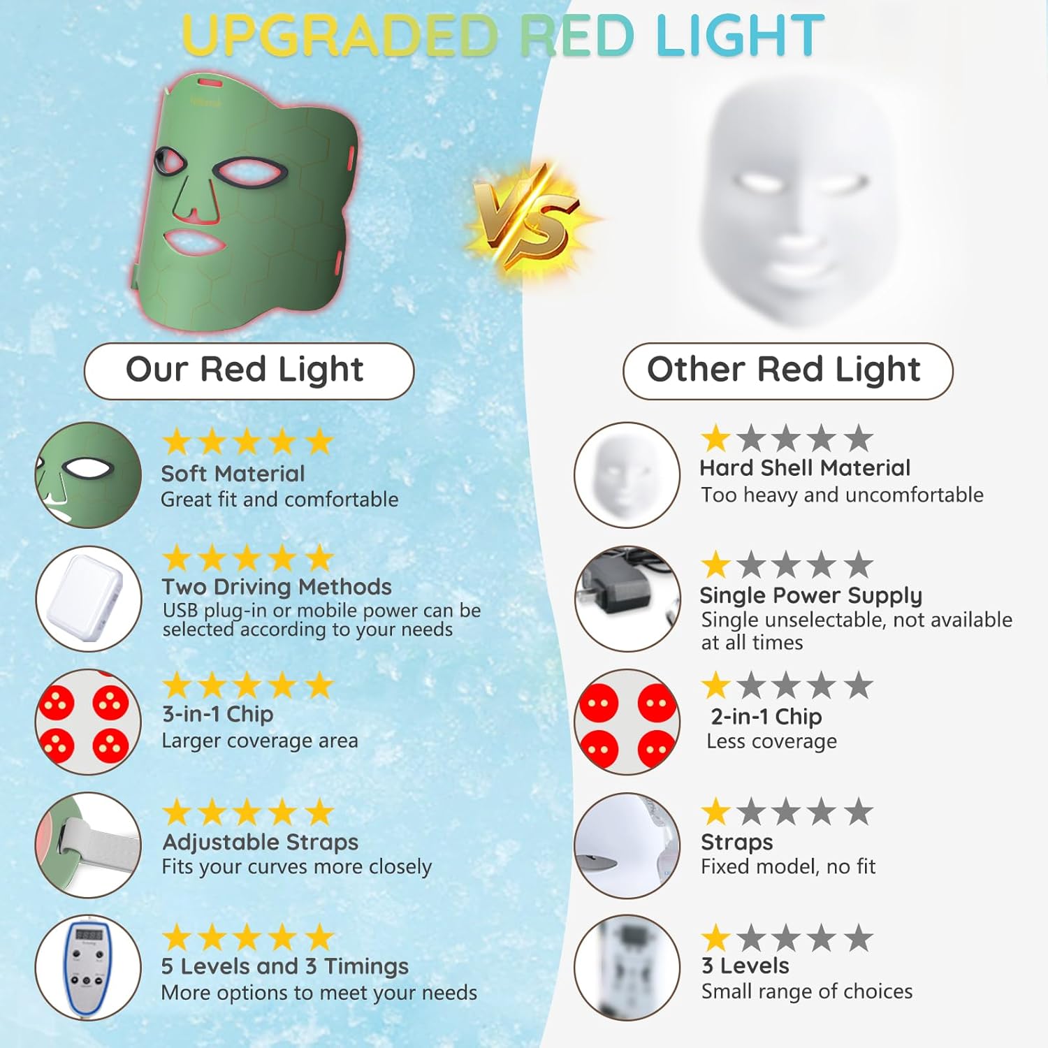 2 Driving Methods: We provide two driving modes for our red face light to meet your different needs. You can choose wall plug and play without waiting for charging, or enjoy the convenience of using it anytime, anywhere by connecting it to a mobile power source