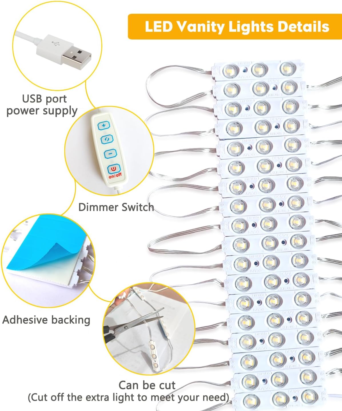 Multiply Application: These makeup mirror lights are waterproof. Ideal for Living room, Bathroom mirror-front lighting, Mural, Vanity table and Art display or home use, chose wisely on where you would like your lights