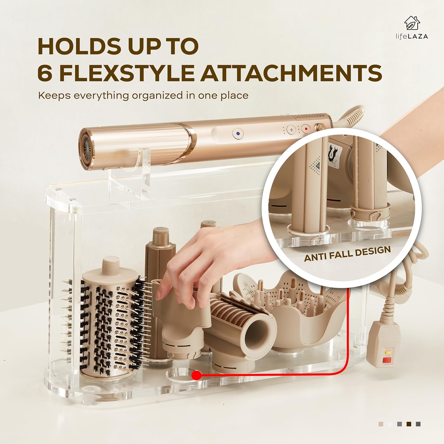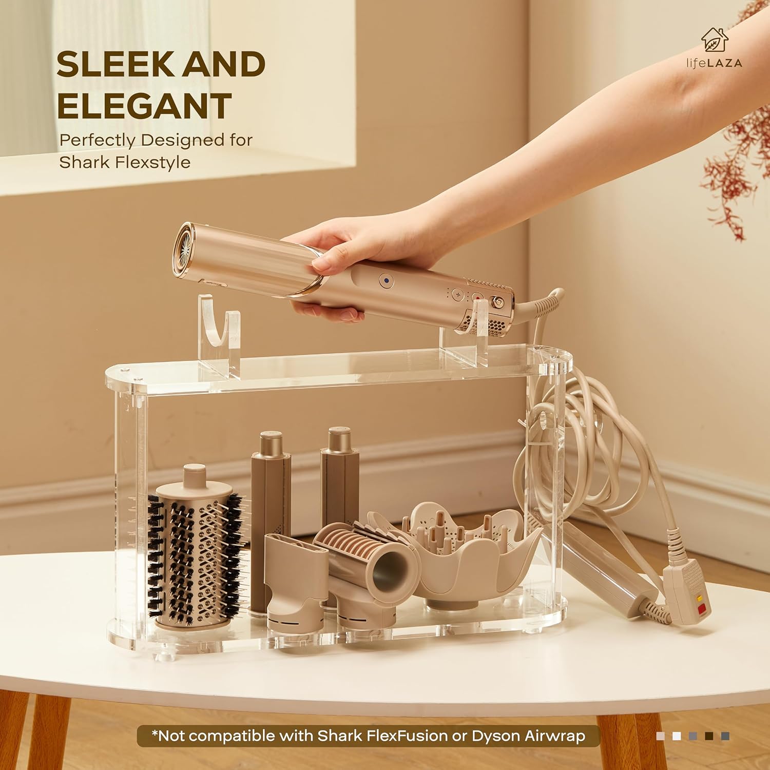✔️ EXCLUSIVELY DESIGNED FOR FLEXSTYLE – Custom-made for Shark Flexstyle, this Shark Flexstyle organizer is precision-designed to securely store your Flexstyle styler and all its attachments. Please Note: Only the acrylic holder is sold; the Shark Flex Style and Flexstyle attachments are not included.