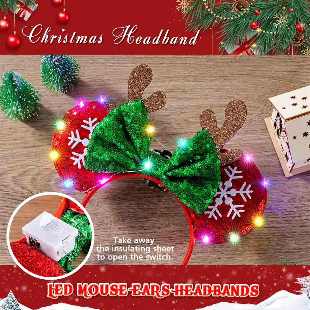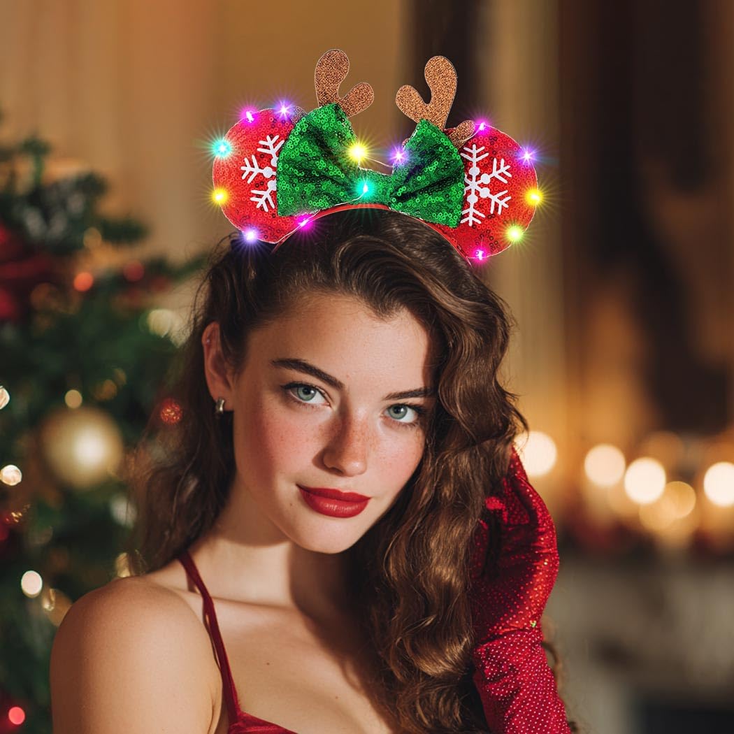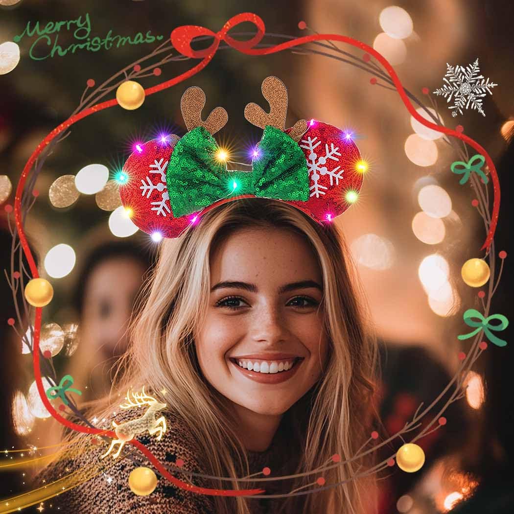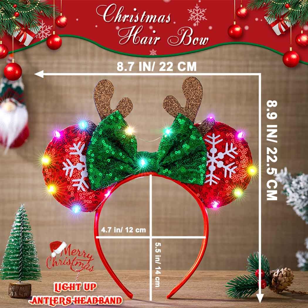 Sincerely welcome you to Aiosy Happy Christmas About Aiosy Aiosy committed to designing superior and fashion items, offering pleased customer provision; our pieces elevate your outfit with excellent and earn more praise for your fashion Features on Christmas Deer Antlers Head band 1 Led Christmas headband is embellished the colorful light bulbs and sparkly foils, make you get more attractive on Christmas Eve 2 Bow mouse ears hair hoop convey holiday blessings while adding a touch of unique charm to your look during the celebration 3 Luminous antler ears headpiece match your festive costume, shows an extraordinary lively temperament 4 Xmas party hair bow let you have fun on Christmas Day, making you highlight at the Christmas Party Note about Led Mouse Ears Hair band Due to manual measurement, the size may be slightly different The actual color of hair decoration head band may vary slightly from the online image due to different Camera lenses Thanks for your understanding Hope you like Aiosy