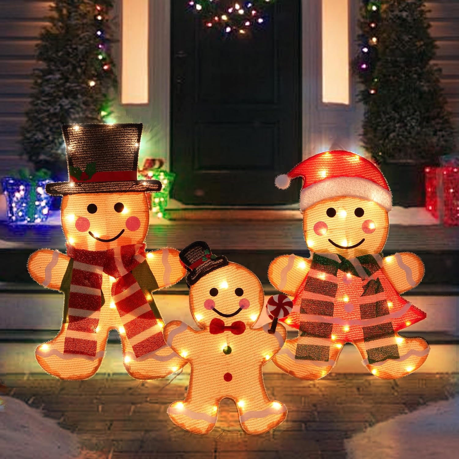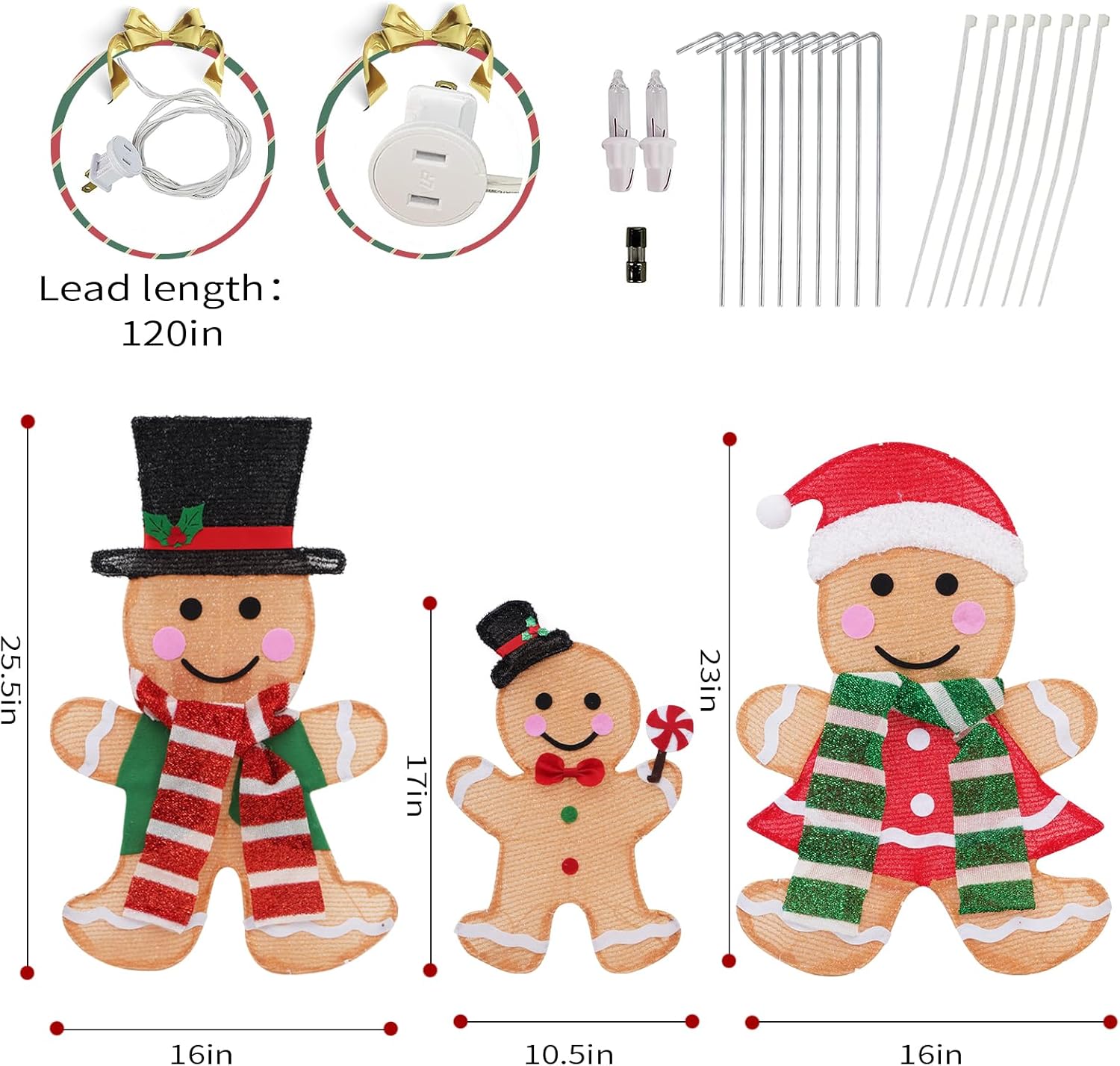 Design of Family Theme: These gingerbread man family has three members, father, mother and baby. The adorable design adds great fun to your Christmas and winter. It is a perfect light up Christmas decoration to greet family and this holiday season.