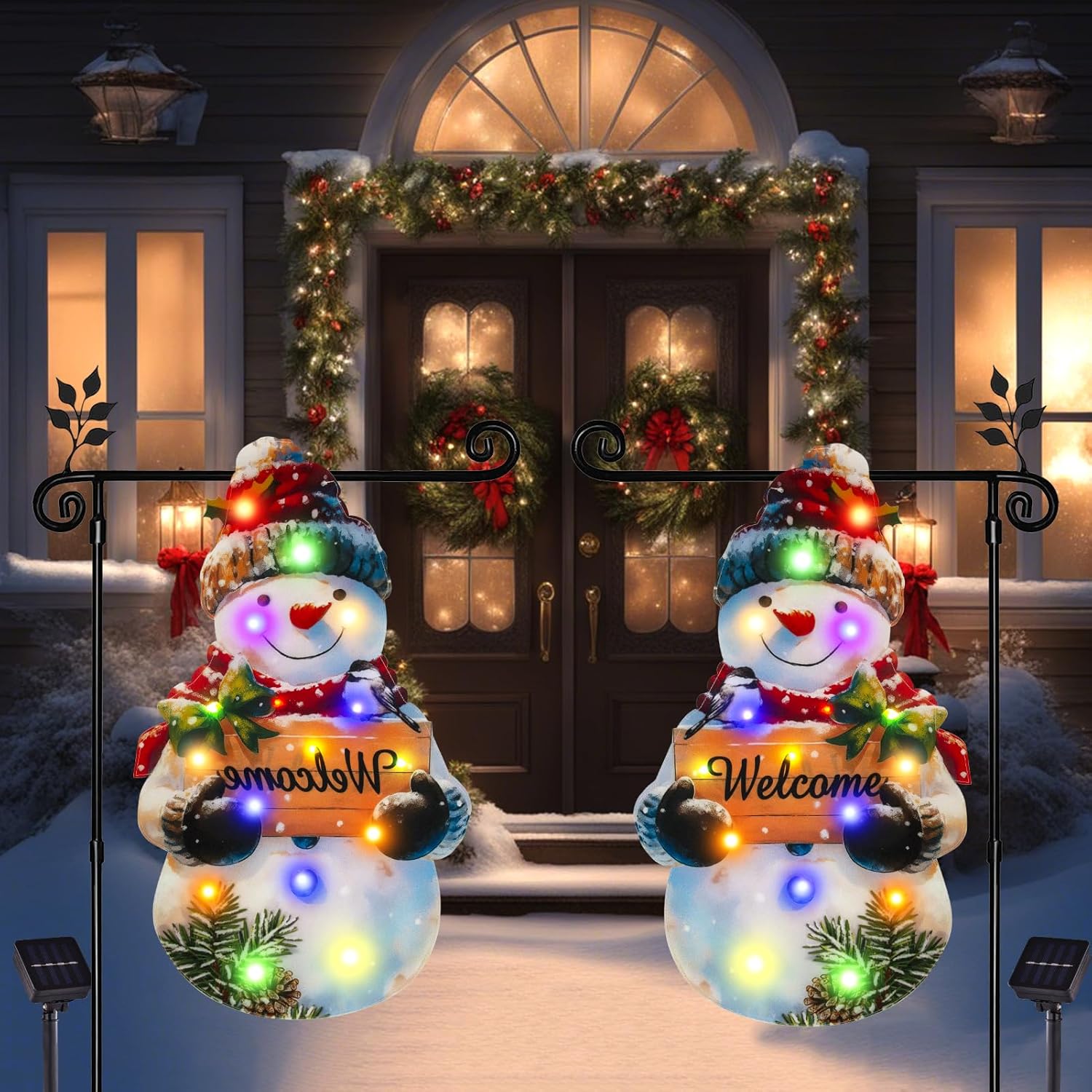 Lighted Christmas Garden Flag 22×13, 8 Modes Double Sided Solar Christmas Decorations Outdoor LED Navidad Flag, Yard Decorations for Xmas Patio Lawn Porch (Snowman Multicolor)