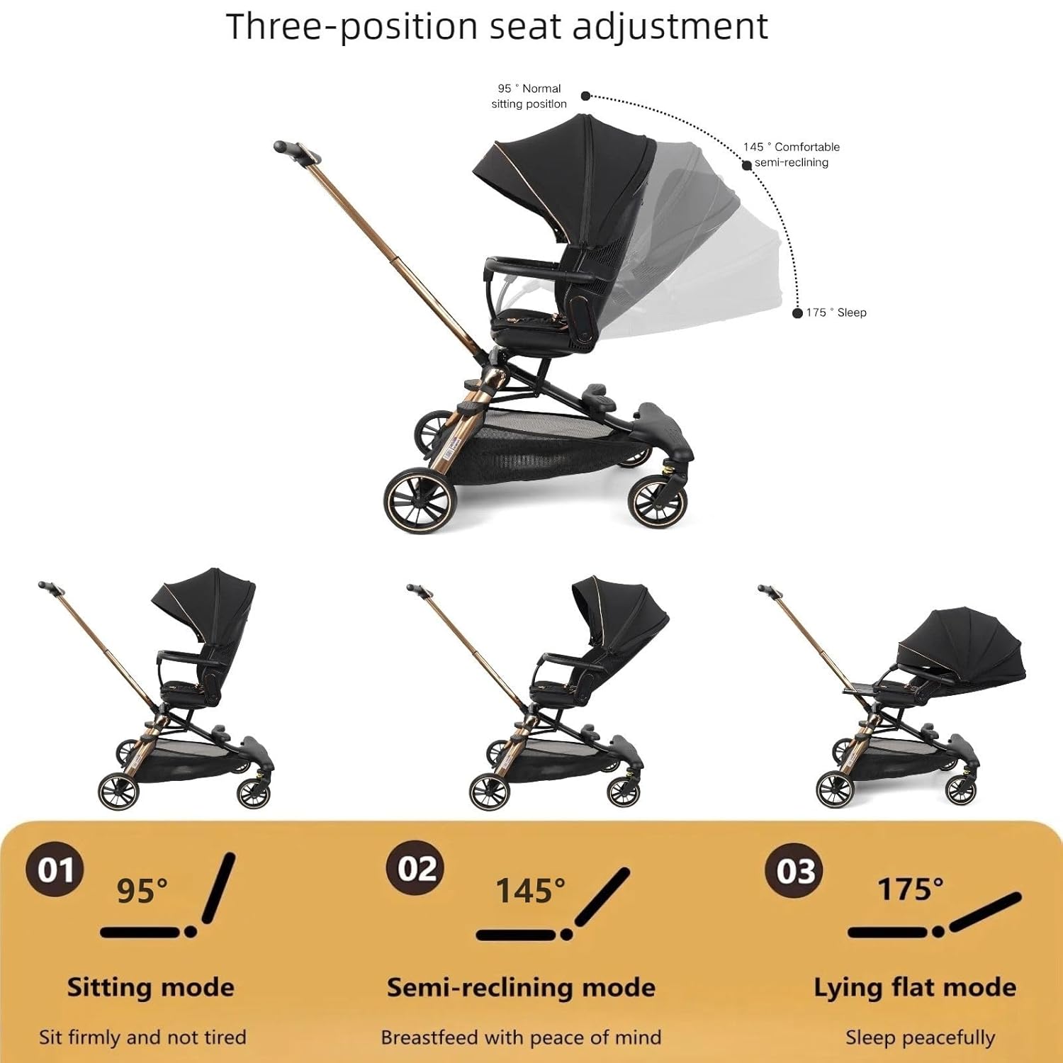 COMFORTABLE SEAT: Our strollers are designed with an elevated seat so that your little one can have a better view of their surroundings. The elevated seat not only enhances their visual experience . The one-piece model seat backrest provides ultimate comfort and support, equipped with winter and summer 3D cotton pads for all seasons