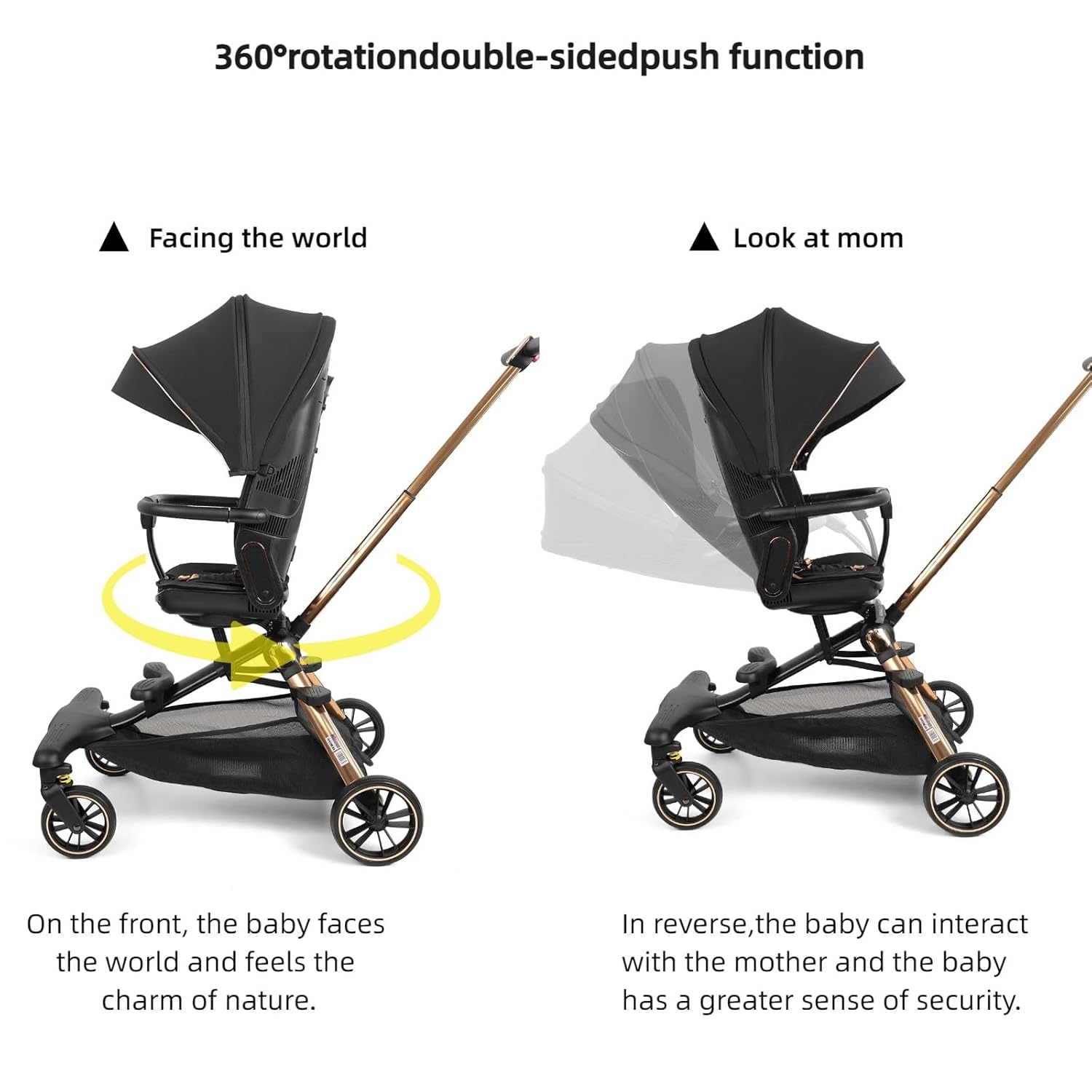 FLIPPABLE SEAT: The stroller’s innovative design allows for a fully adjustable seat,, the seat can be flipped forward or swiveled to face the parent, giving you the flexibility to interact with your child on the go