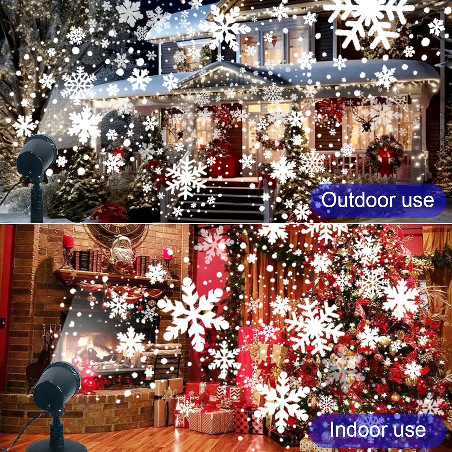 ⛄️Christmas Projector Lights Outdoor Decorations : Our christmas projector snowflake lights feature a unique snowflake design with a larger surface area and brighter lighting effects.The outdoor christmas projector lights has more brighter built-in LED bulbs, working together to create a stunning visual effect that simulates the romantic scene of snowflakes falling.The Christmas lights can fill your home with Christmas atmosphere.