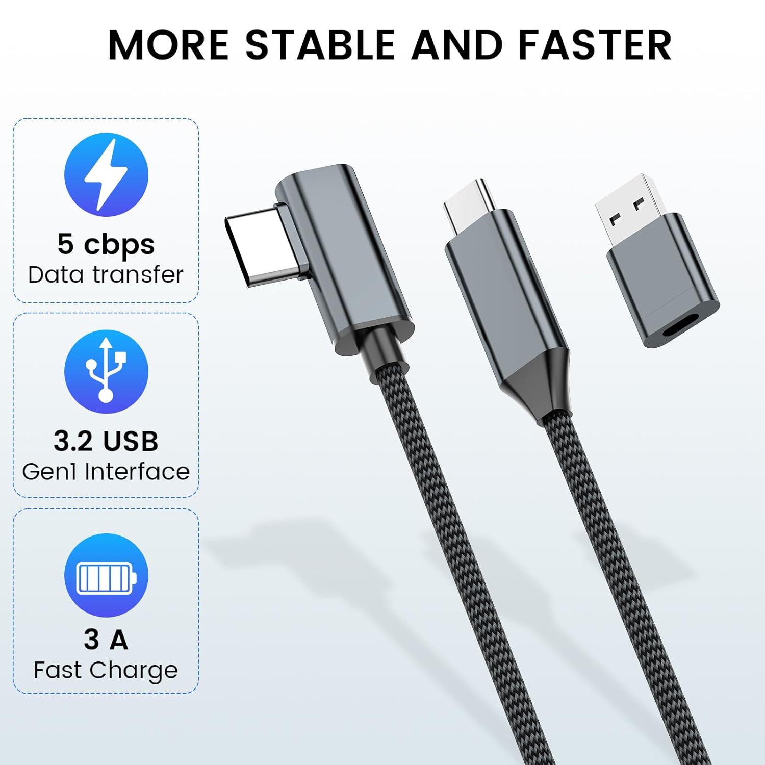 [Wide Compatibility & Easy Setup]Compatible with Meta Quest 3S/3/2/Pro and Pico 4, this cable supports USB 3.0/3.1/3.2 ports, ensuring fast and stable data synchronization. The included USB-A adapter expands compatibility with a variety of PCs and laptops.