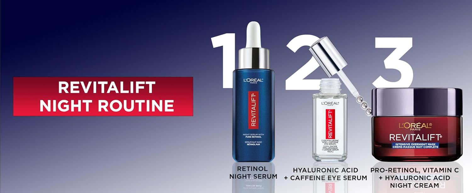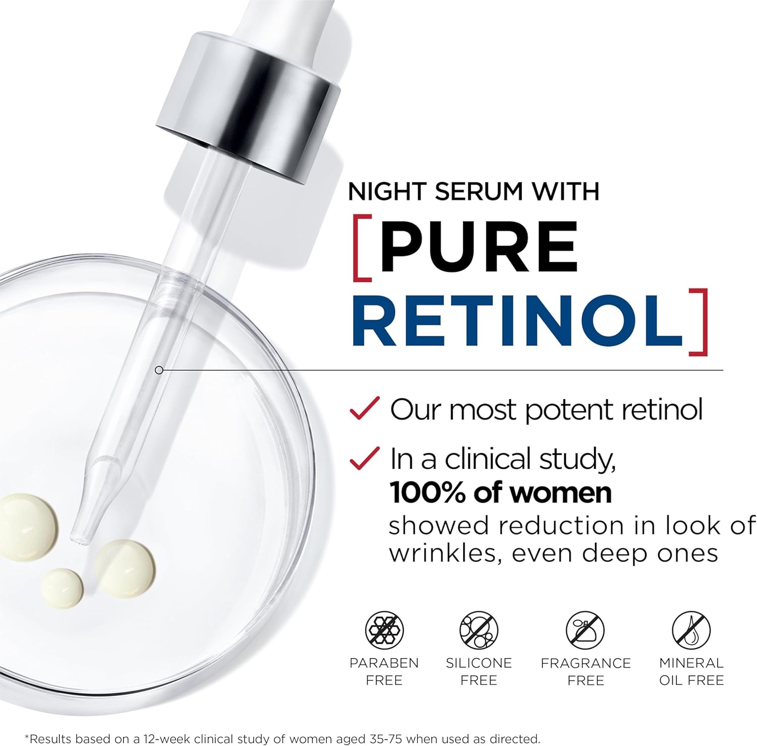 REVITALIFT TRIPLE POWER LZR NIGHT SERUM with 0.3% PURE RETINOL – Dermatologist-validated! REDUCES LOOK OF WRINKLES, EVEN DEEP ONES. SMOOTH TEXTURE & MOISTURIZE. PURE RETINOL – Faster efficacy! Look for 0.3% – 1.0% PURE RETINOL for quicker results. STAY EFFECTIVE with exclusive technology from first drop to last. FRAGRANCE-FREE, SILICONE-FREE, PARABEN-FREE. ABSORBS QUICKLY, NO CLOGGED PORES. GRADUAL INTRODUCTION, ALWAYS USE SPF.