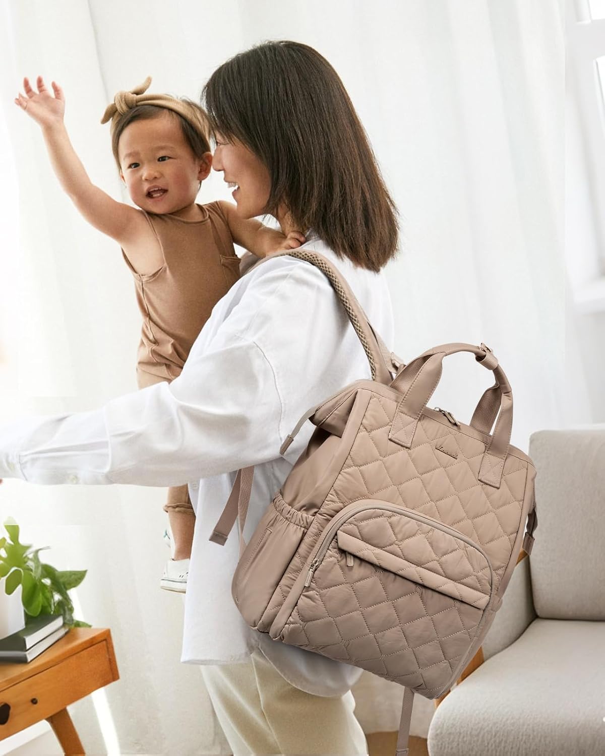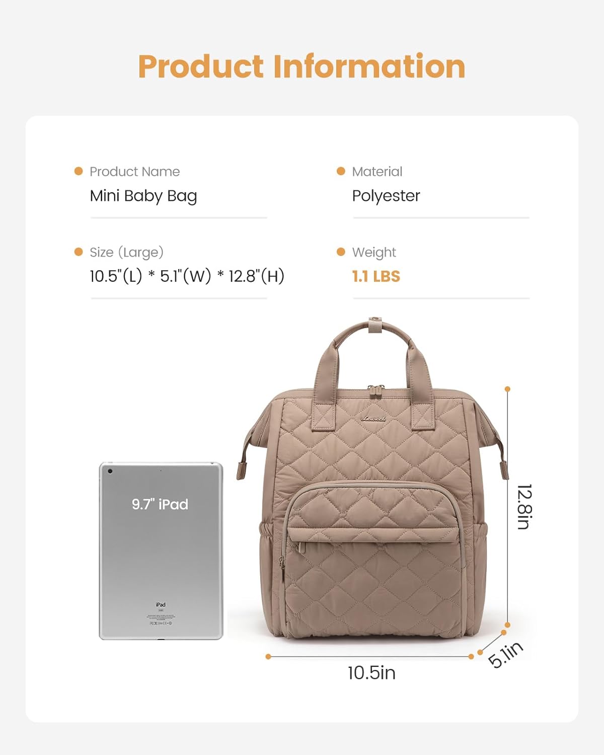 【SMALL & STYLISH】: This diaper backpack combines a sleek, elegant design with precise stitching, making it ideal for everyday outings. Despite its small size, it efficiently meets all your essential storage needs.