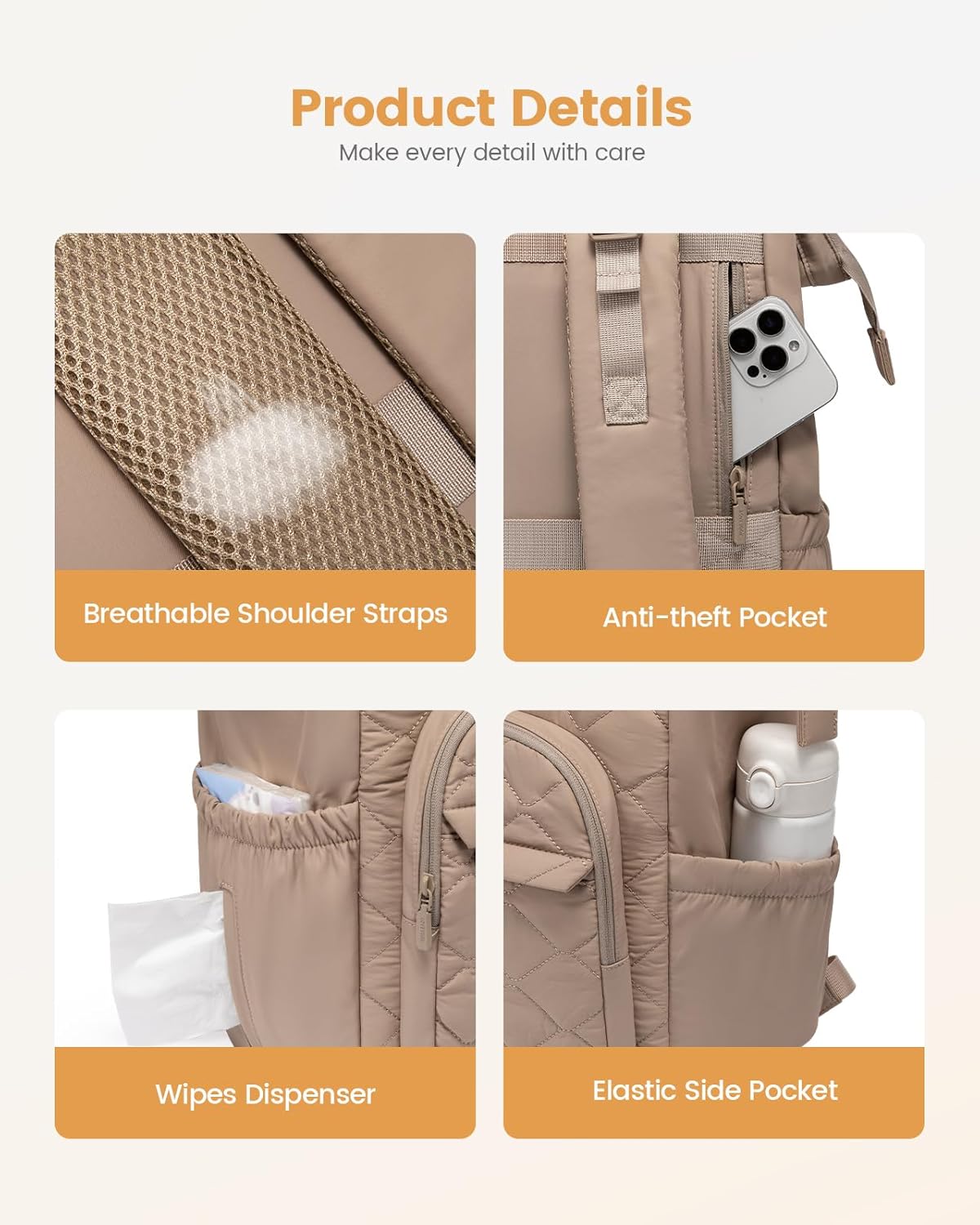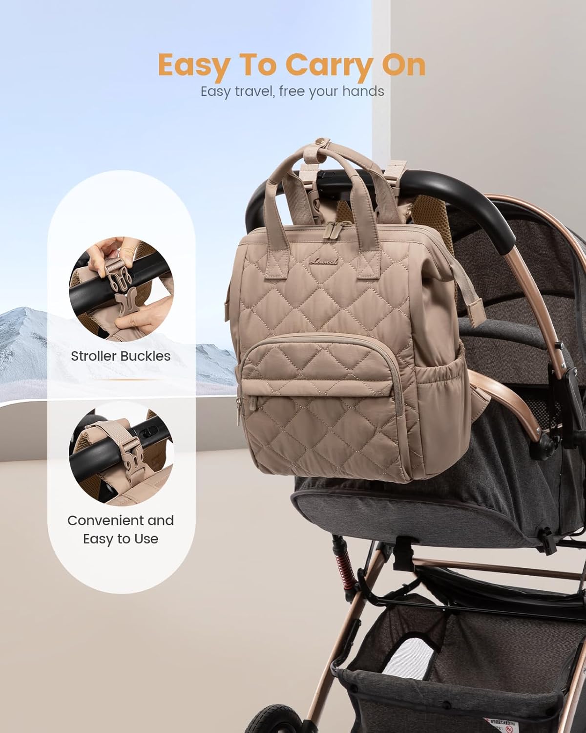 【STROLLER BUCKLES & CHANGING PAD】: Features stroller buckles for easy attachment and hands-free convenience, plus includes a waterproof, easy-to-clean changing pad for quick diaper changes anywhere.