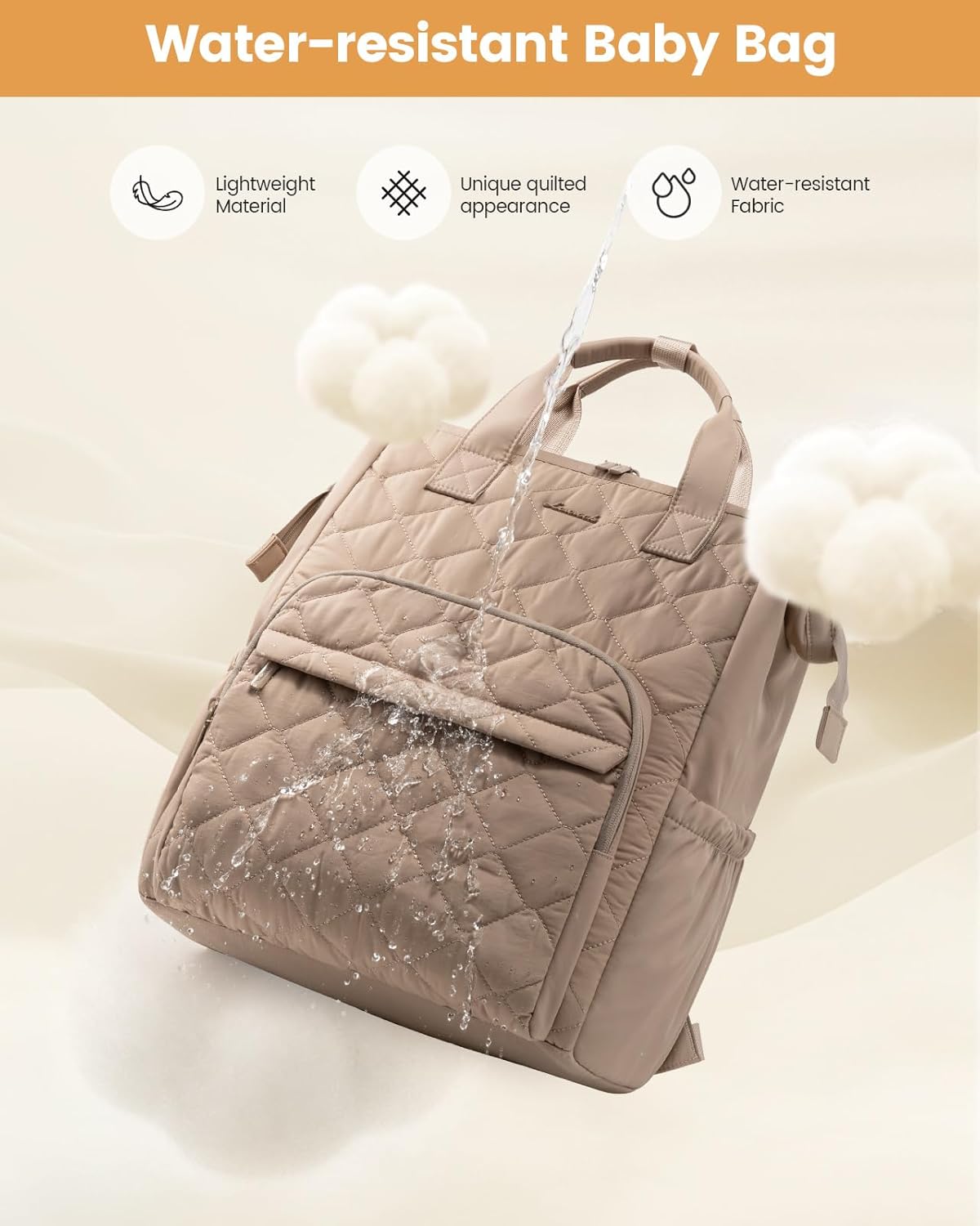 【SECURE & EASY-TO-CLEAN】: Crafted from baby-safe polyester, this diaper backpack is both water-resistant and easy to clean. Safe for your little one, it’s perfect for everyday use and handling life’s little spills efficiently.
