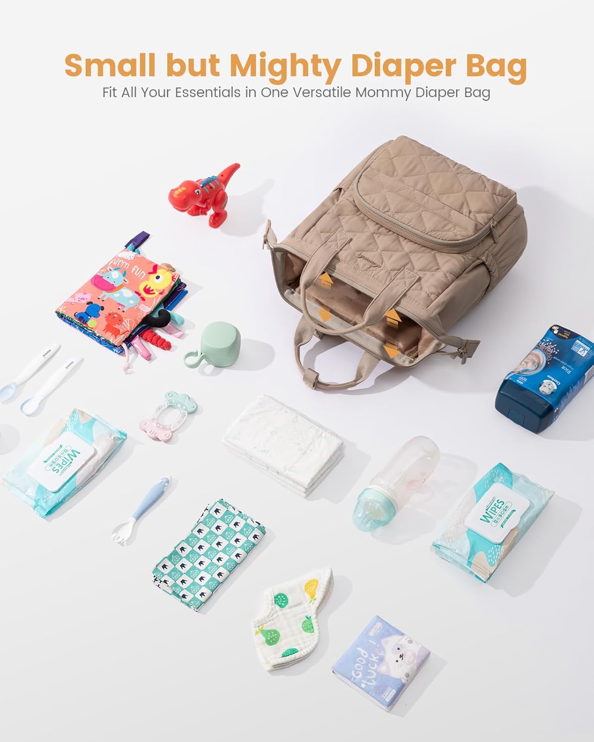 LOVEVOOK Small Diaper Bag Backpack, Mini Baby Bag for Girl Boy with Changing Pad, Diaper Backpack for Mom Dad with Stroller Buckles, Khaki