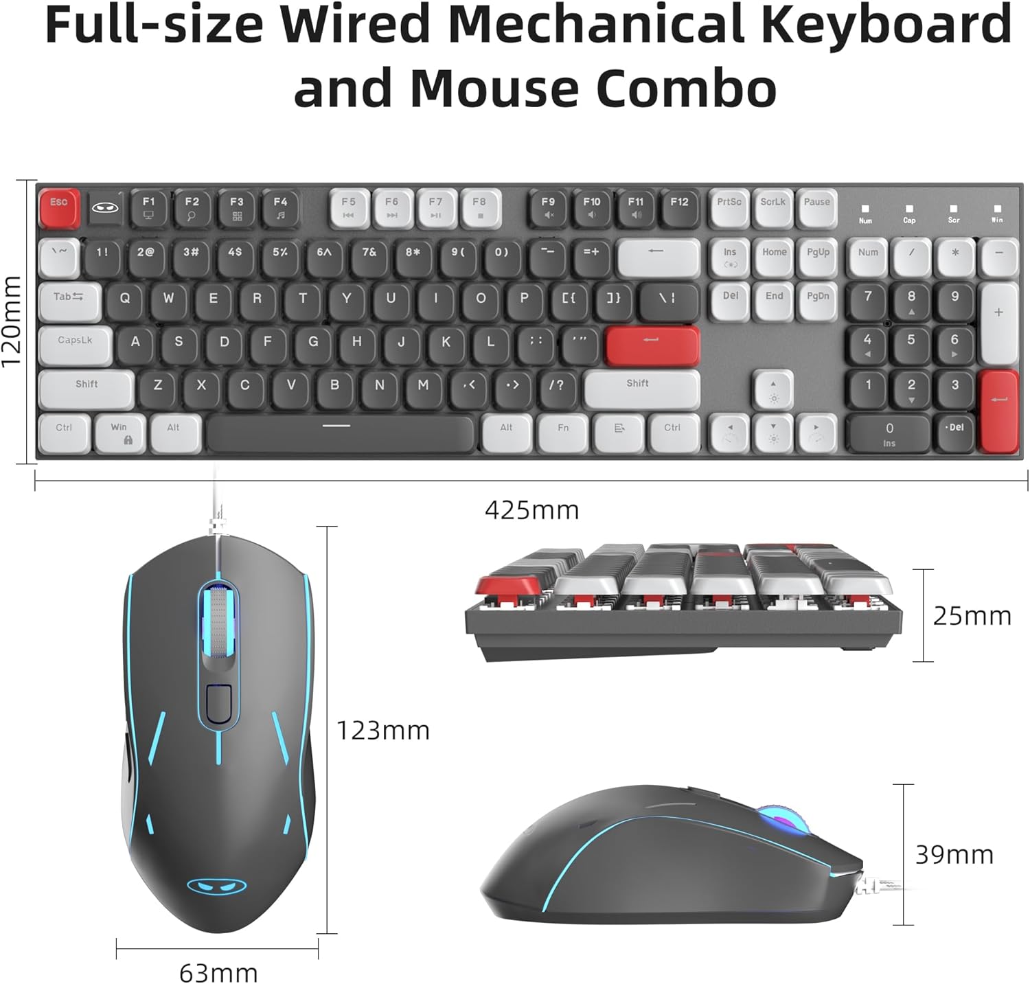 【Detachable USB-C Wired Connectivity】Tired of wireless connectivity issues and battery life concerns? This wired keyboard and mouse combo is the reliable solution you need for your desktop or laptop setup. Never have to worry about running out of power mid-task for your PC Keyboard.