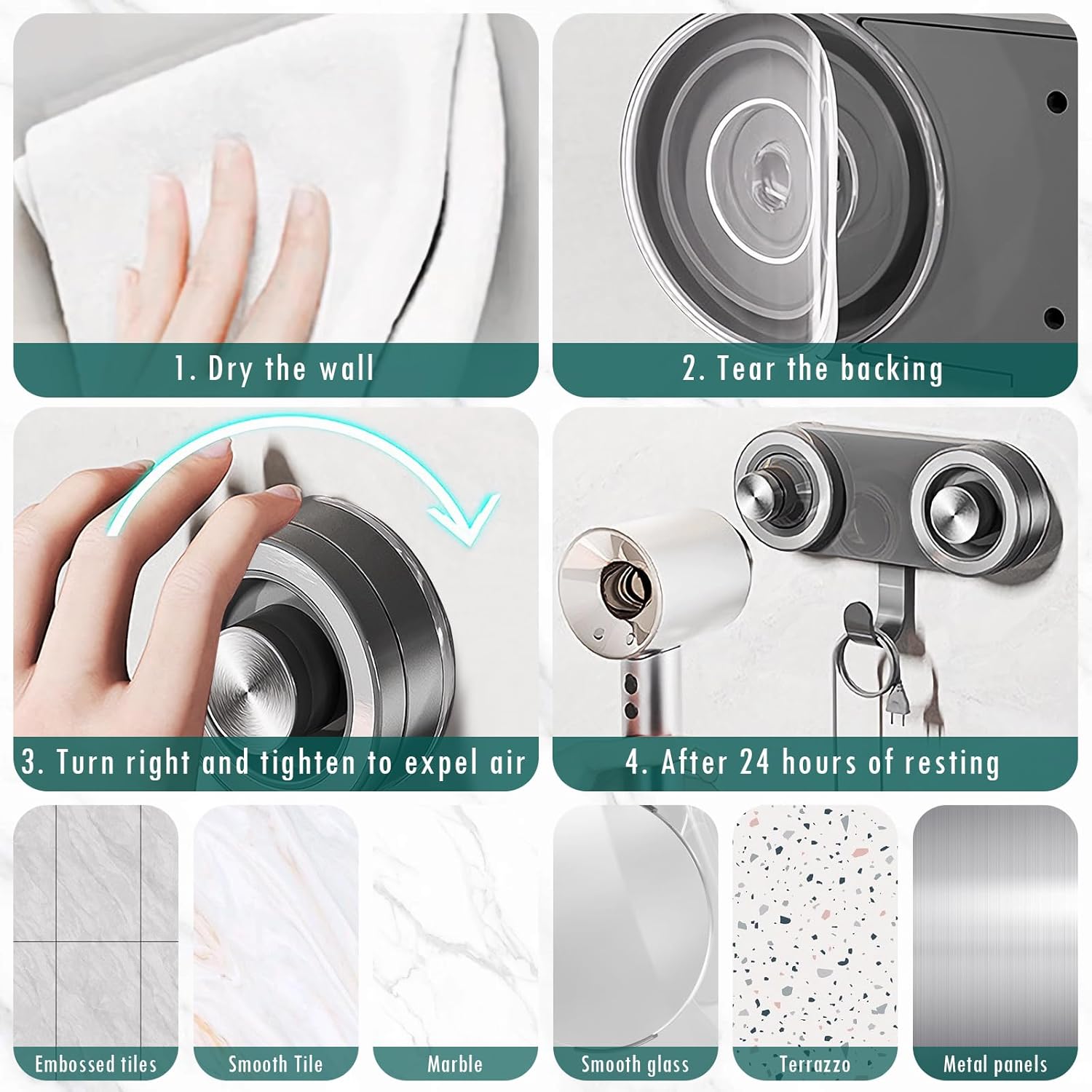 ✅ Durable & Stylish Design – Made from rust-resistant ABS material, this sleek dryer holder blends with any decor while providing long-lasting, sturdy storage for your hair tools.