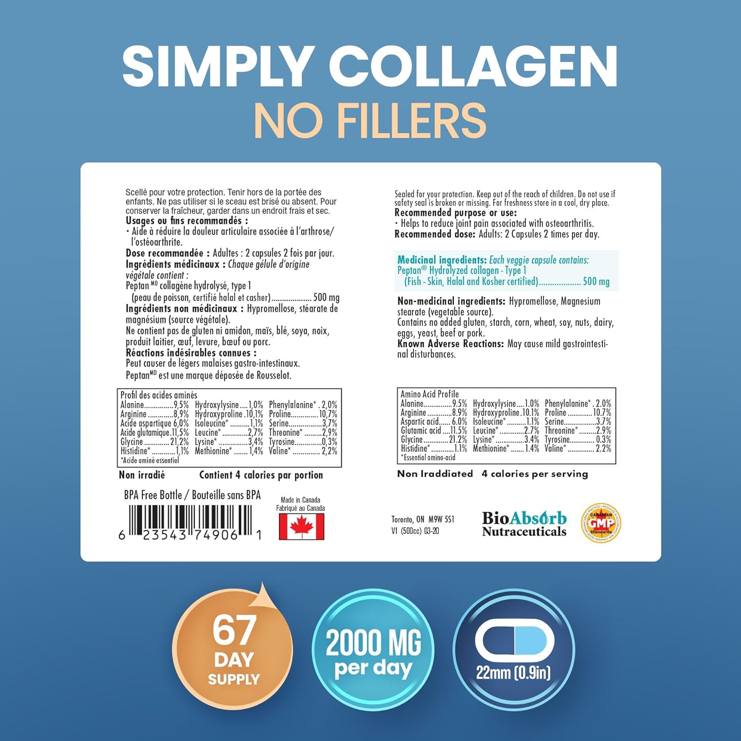 WHY BIOABSORB MARINE COLLAGEN? Manufactured by means of a unique enzymatic hydrolysis process, our Type 1 collagen peptides are broken down into smaller peptides that are easy for the body to absorb and put to use. Ideal for pescatarians or anyone with intolerance to beef or pork protein, it is also Halal and Kosher.