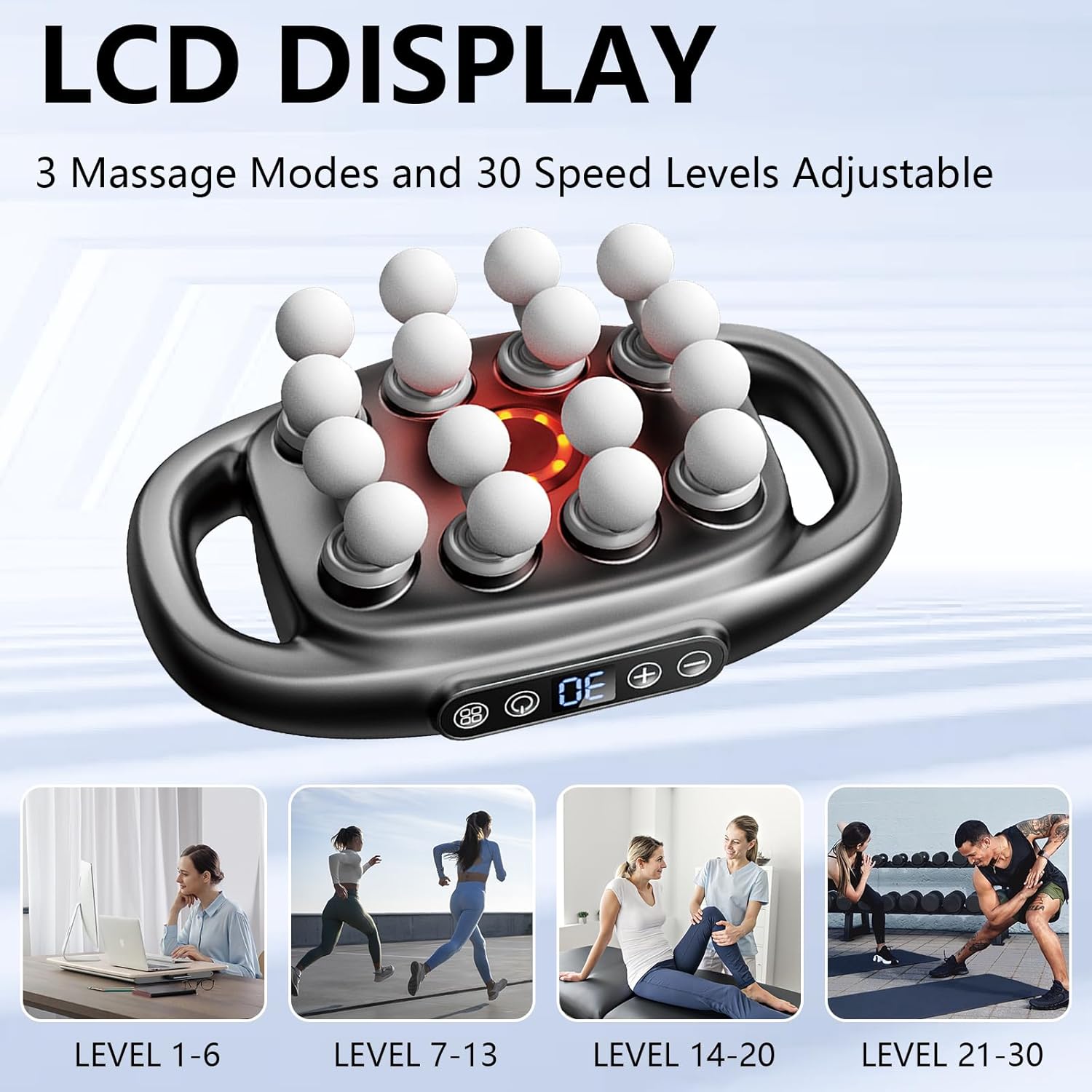 adjustable energy intensities, allowing you to find the right amplitude to relieve all muscle soreness problems.