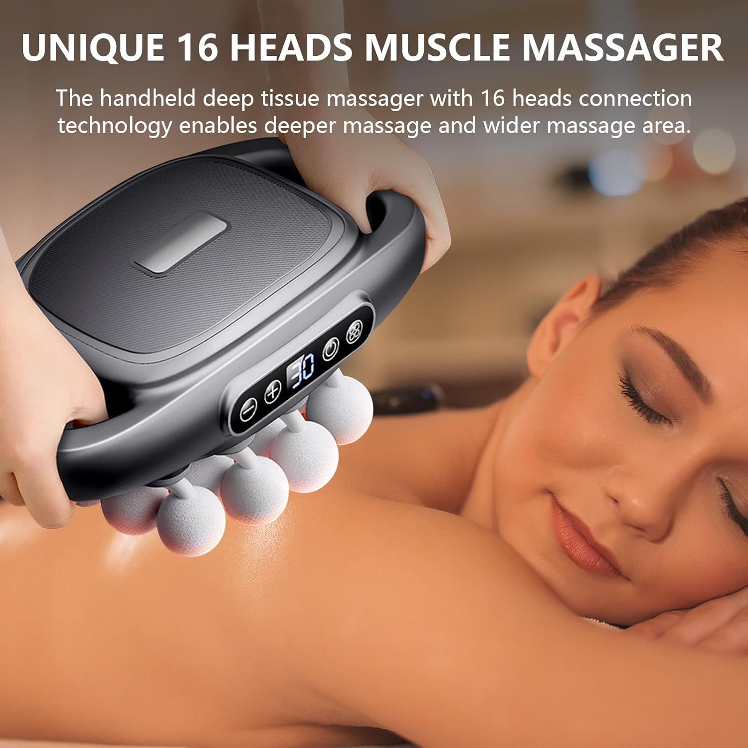 【16-Head Massager】: This 16-head deep tissue massager is equipped with 16 massage heads for a full body massage, deep muscle relaxation, and effective fatigue relief. The 16-head muscle relaxation massager uses high-frequency vibration technology, which can effectively promote muscle recovery and reduce muscle pain and stiffness.