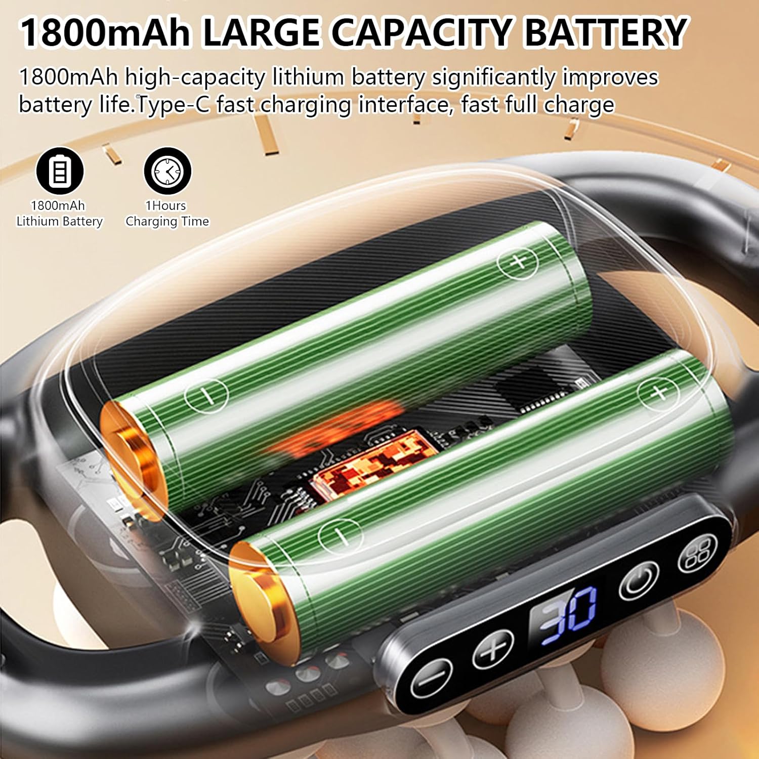 Type-C and a powerful 2000 mAh battery ensure up to 2 hours of continuous use.
