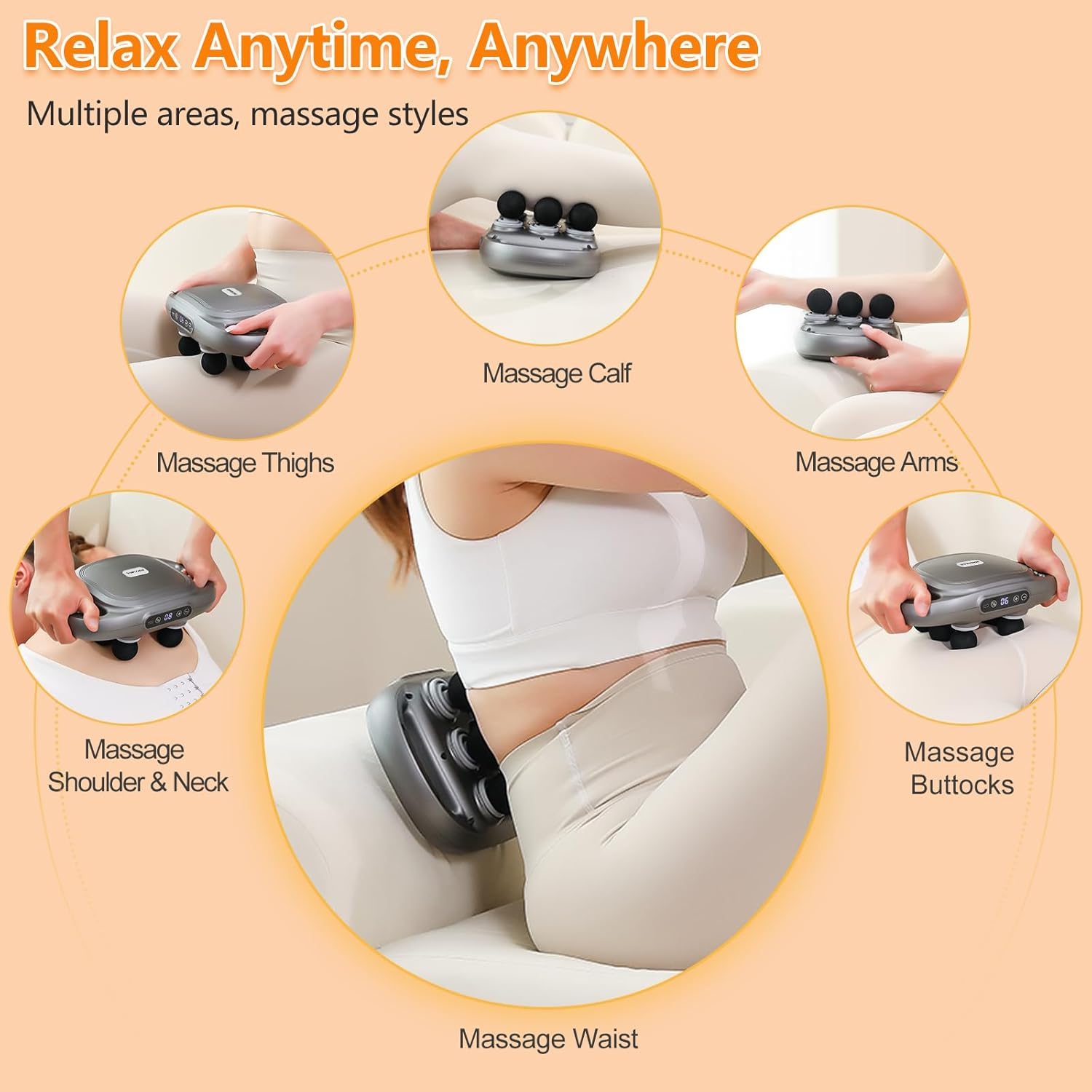🎳 Deep Tissue Massage—The 6 head back and neck massager provides 6 times the relaxation and coverage with a maximum speed of 19,000 rpm, a massage range of 20 mm, and a stall force of 44 lbs.The massager provides constant stability and precise control with every massage. Releases fatigue and tension quickly and effectively.