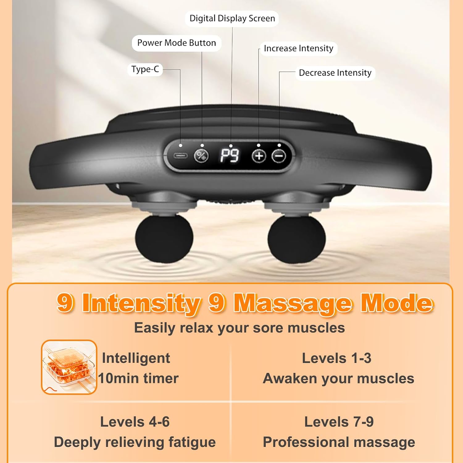 🏉 Multiple Modes—Massage gun deep tissue has 9 massage modes and 9 intensities.Levels 1-3 are great for waking up the body, levels 4-6 target fascial relaxation.Levels 7-9 provide a deep massage. With the back massager, you can relax with your hands free.
