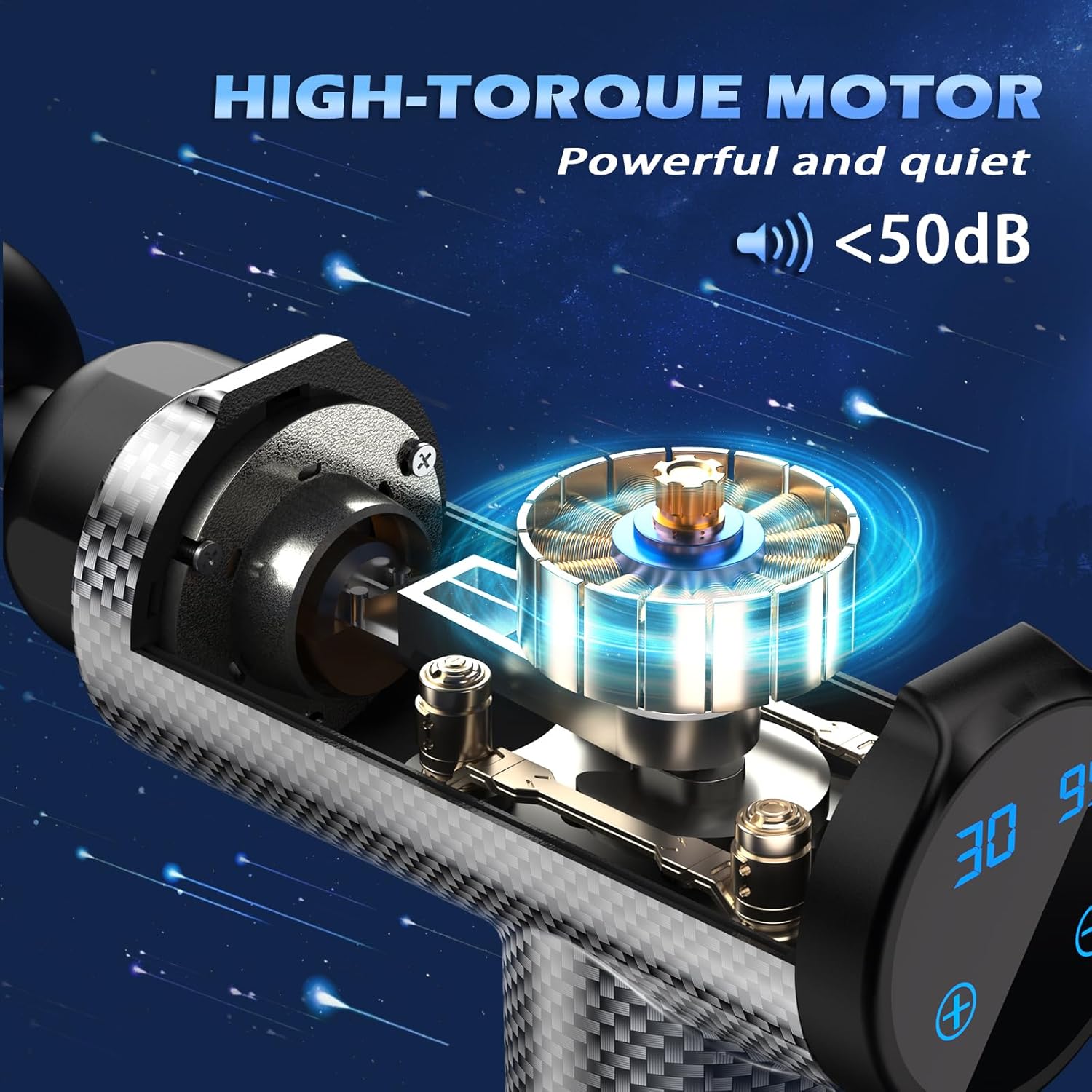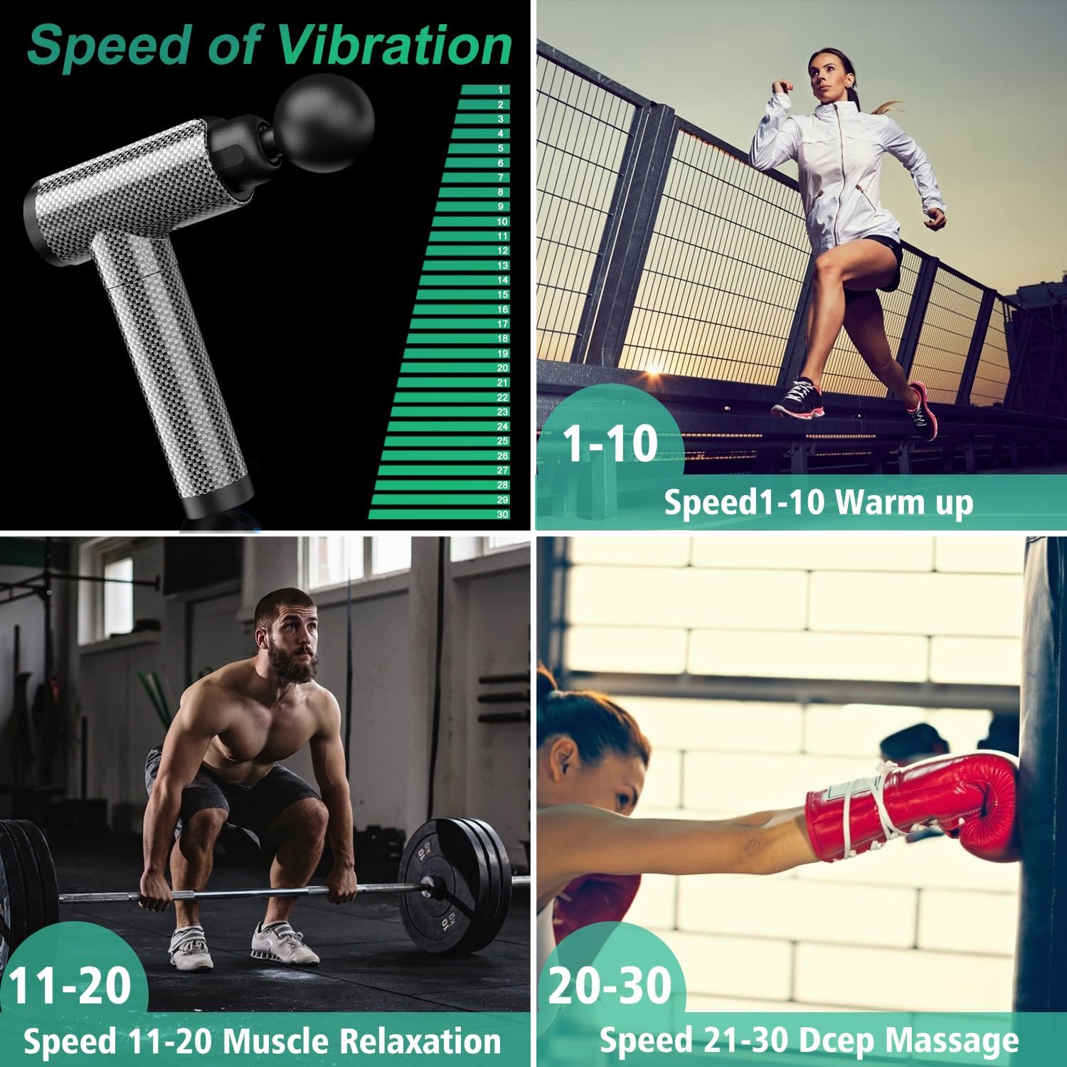 Modern Design and 30 Adjustable Speed Levels:JamGym massage gun is designed with LCD touch screen, which provides more diverse choices for users. And the users can switch to any speed levels they want. The touch screen design also gives the massage gun a more technological and modern look.