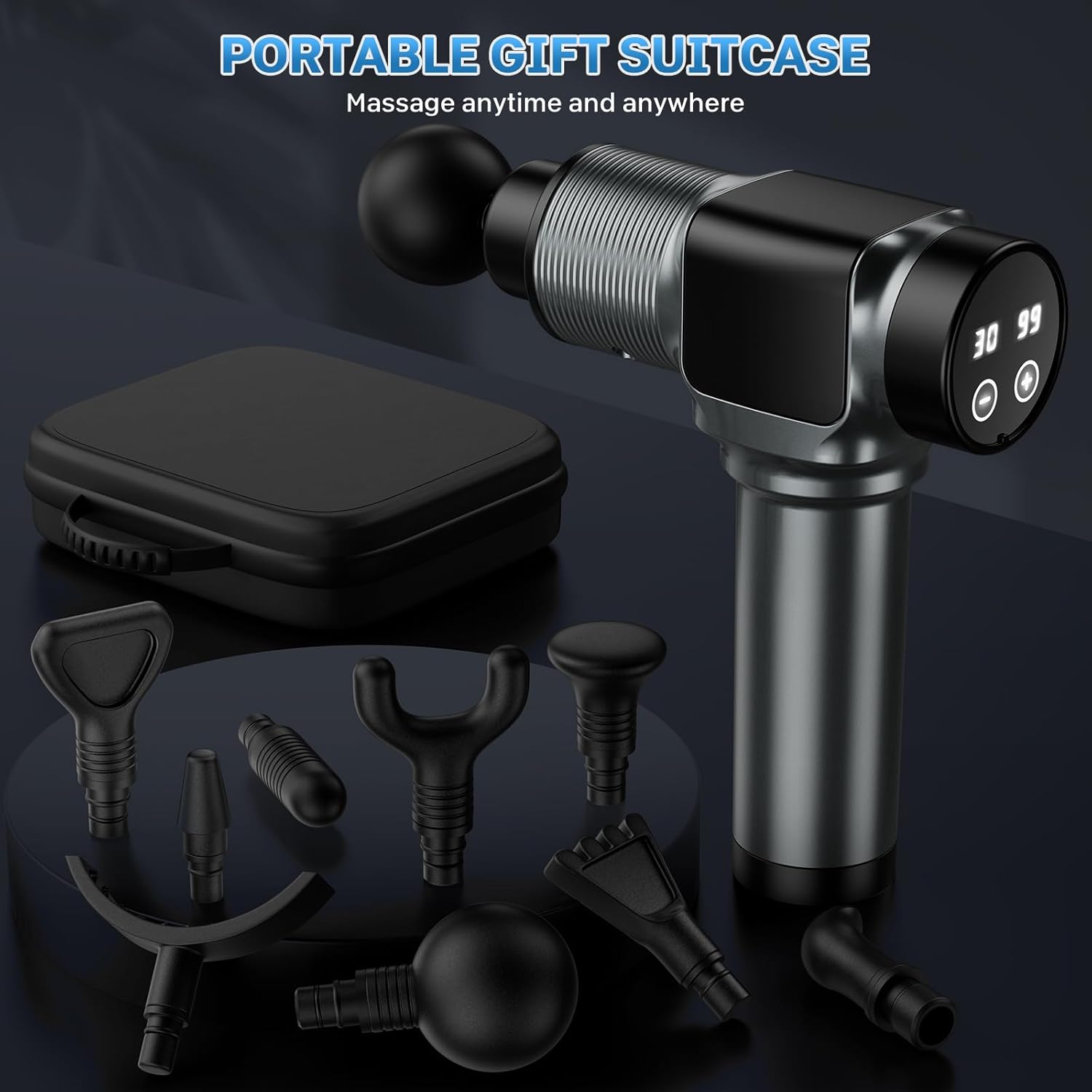 Massage Gun, Portable Deep Tissue Massager for Back Neck Muscle Relieve, Quiet Percussion Massage Gun with 30 Speeds and 9 Massage Heads, Relax Gifts for Dad