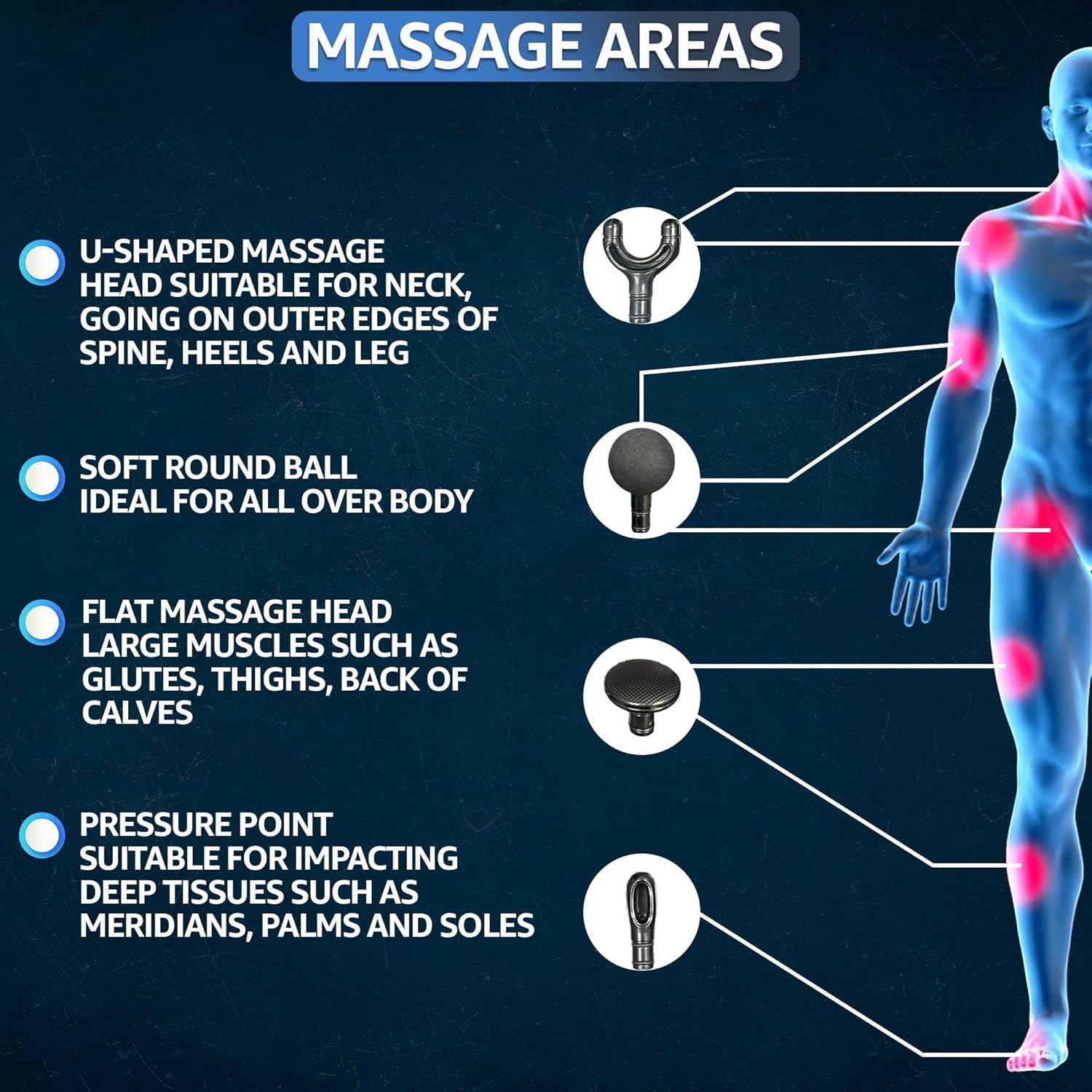 CUSTOMIZE YOUR MASSAGE: Comes with 4 interchangeable massage heads designed for various muscle groups, ensuring a customized massage experience tailored to your needs. With 5 adjustable speeds, you can easily personalize your massage intensity, making it suitable for everything from gentle relaxation to deep muscle relief.