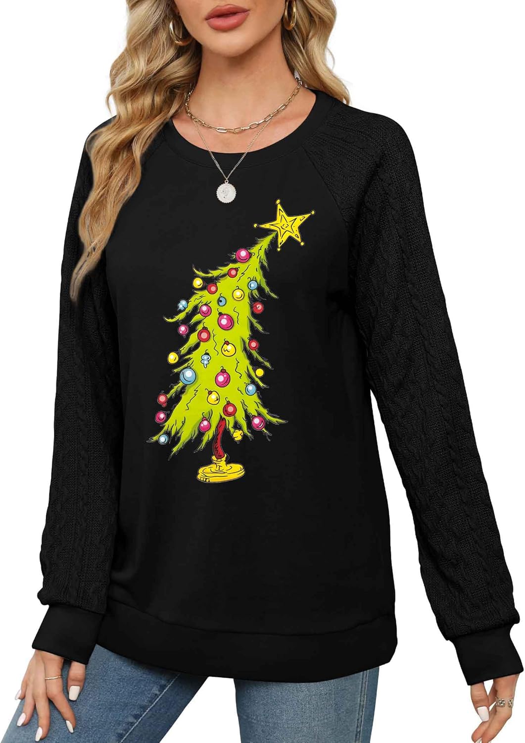 Cute Christmas Tree Graphic Long Sleeve Shirt