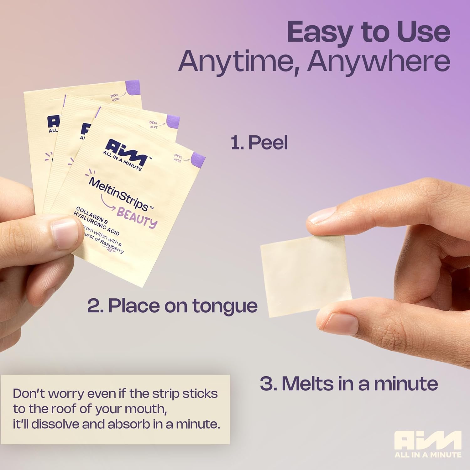 QUICK-DISSOLVE, ON-THE-GO FORMAT: Designed for ease and convenience, MeltinStrips dissolve instantly on your tongue—no water, mixing, or swallowing required. The compact, travel-ready packaging makes it effortless to take your daily beauty dose wherever life takes you. Just peel, place, and let it melt for fast-absorbing support without digestive discomfort or bulky supplements.