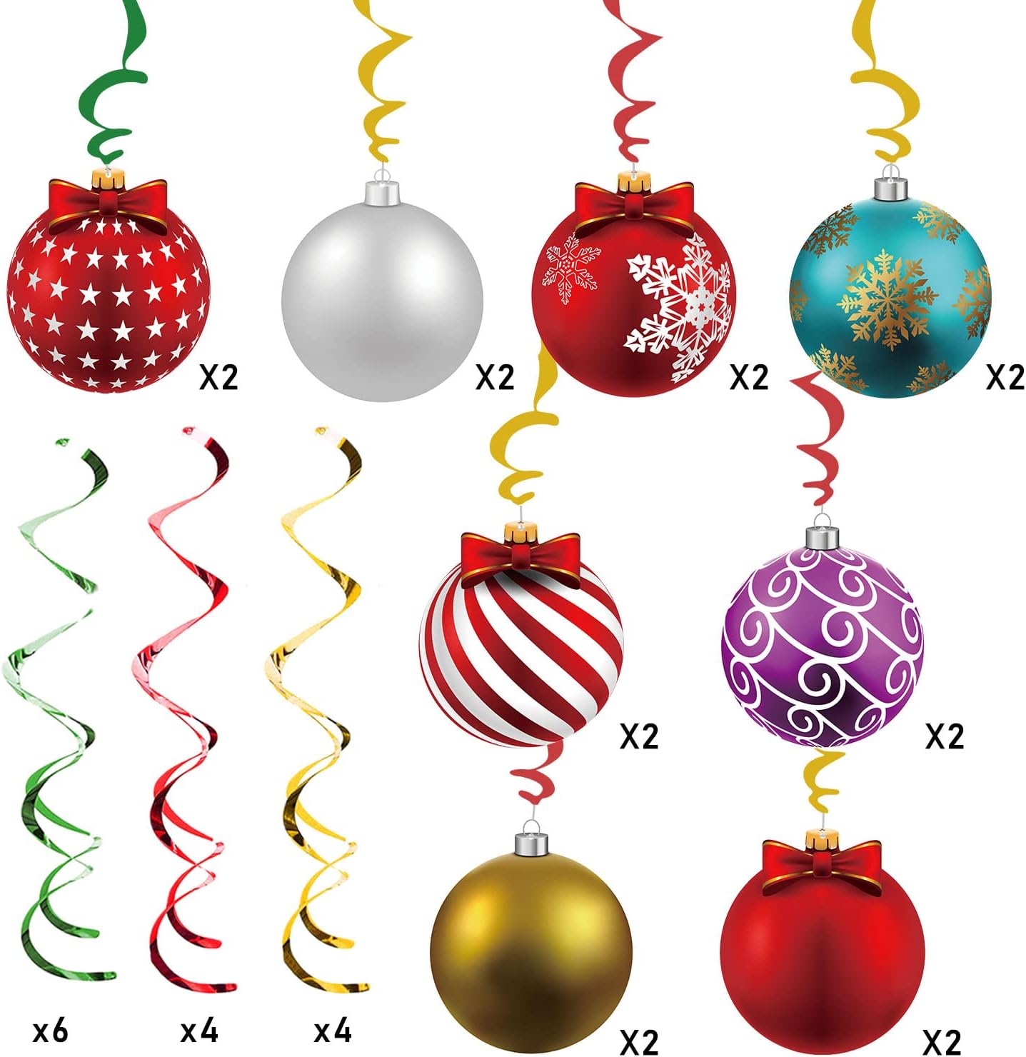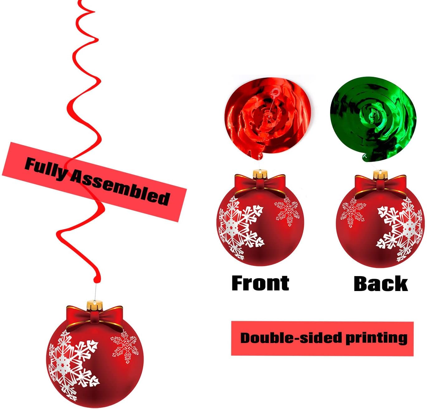 Ready to use: These fiesta Christmas party hanging swirls come with assembled plastic hooks, NO DIY REQUIRED. Just open the package and hang anywhere you like. Hang above the ceiling, door, windows, Christmas tree, a buffet table or gift table, doorway, combine with more party supplies, and they will give you happy memories when as a great photo background.