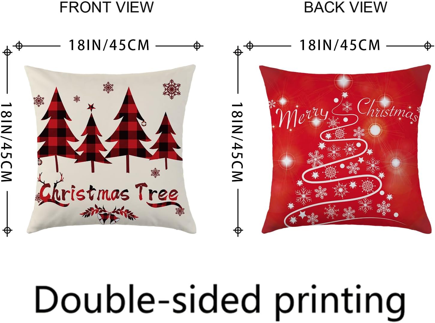 Xmas Pillow Covers: Set of 4 Christmas Throw Pillow Covers 18 x 18 inch (45 x 45 cm), double-sided printed with cute patterns. The Red Christmas pillow covers with pretty pattern,which are matched perfectly with Christmas tree,give you and family the feeling of Winter Holiday Christmas( Not include Insert or filler )