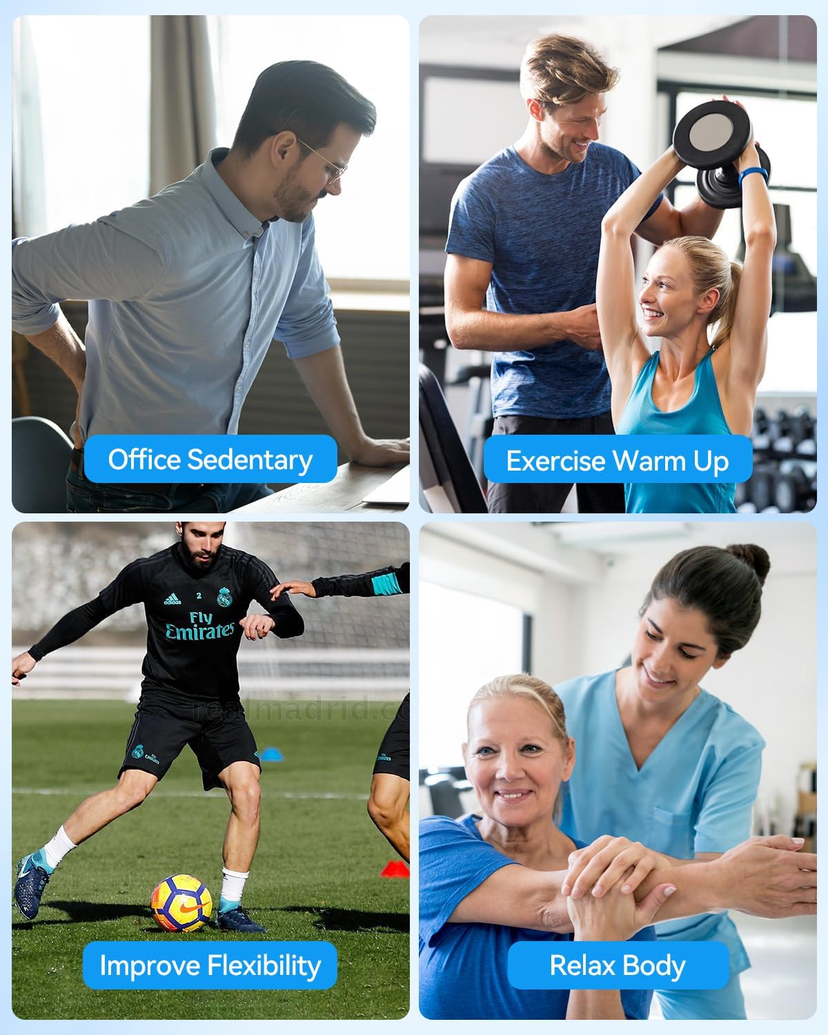 【Powerful Deep Tissue Massage Gun】Musclez muscle massage gun with its powerful percussion massage technology, is perfect for daily muscle percussion massage of athletes, fitness instructors, hiking, dancing and sedentary office work. Whether you are a cardio junkie, strength training aficionado or a 9-5 executive who can’t help but sit perched on the office chair, this percussion massage gun is exactly what you need at the end of the day to relax your muscle and get comfort.