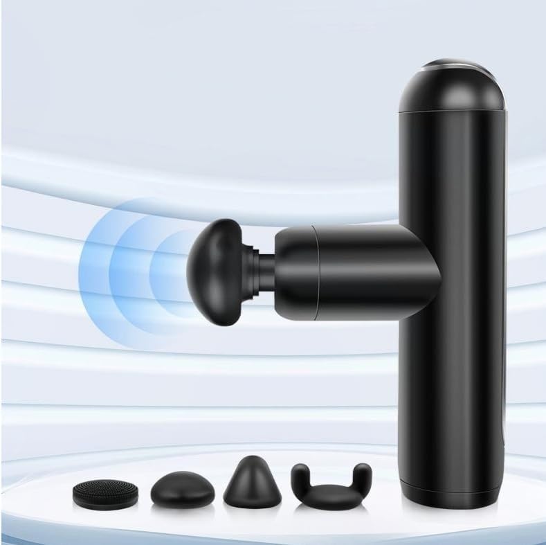 Experience professional-grade muscle relief in a compact form with this sleek mini massage gun. The portable design features a powerful brushless motor that delivers targeted deep tissue massage therapy wherever you need it. This versatile massager comes with 4 specialized attachment heads to address different muscle groups and massage needs. Perfect for post-workout recovery, relieving muscle tension, or soothing everyday aches, this handheld device fits easily in your gym bag or carry-on. The ergonomic design ensures comfortable handling during use, while the matte black finish adds a touch of sophistication. Whether you’re an athlete, fitness enthusiast, or someone seeking relief from muscle tension, this mini massage gun offers convenient, on-the-go muscle therapy. The quiet operation and rechargeable design make it ideal for use at home, office, or gym.