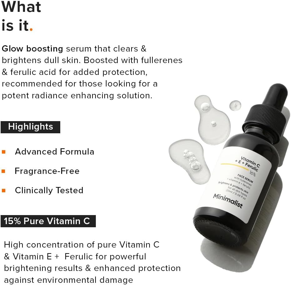 [ A POTENT STABLE VITAMIN C FACE SERUM ]: Formulated with Stable Vitamin C derivative – Ethyl Ascorbic Acid which is 86% pure Vitamin C. This serum delivers Ethyl Ascorbic Acid in high concentration of 15% & 1% blend of 2 potent antioxidants – Vitamin E & Ferulic Acid. Together they not only stabilize the formula but also improve efficacy of Vitamin C.
