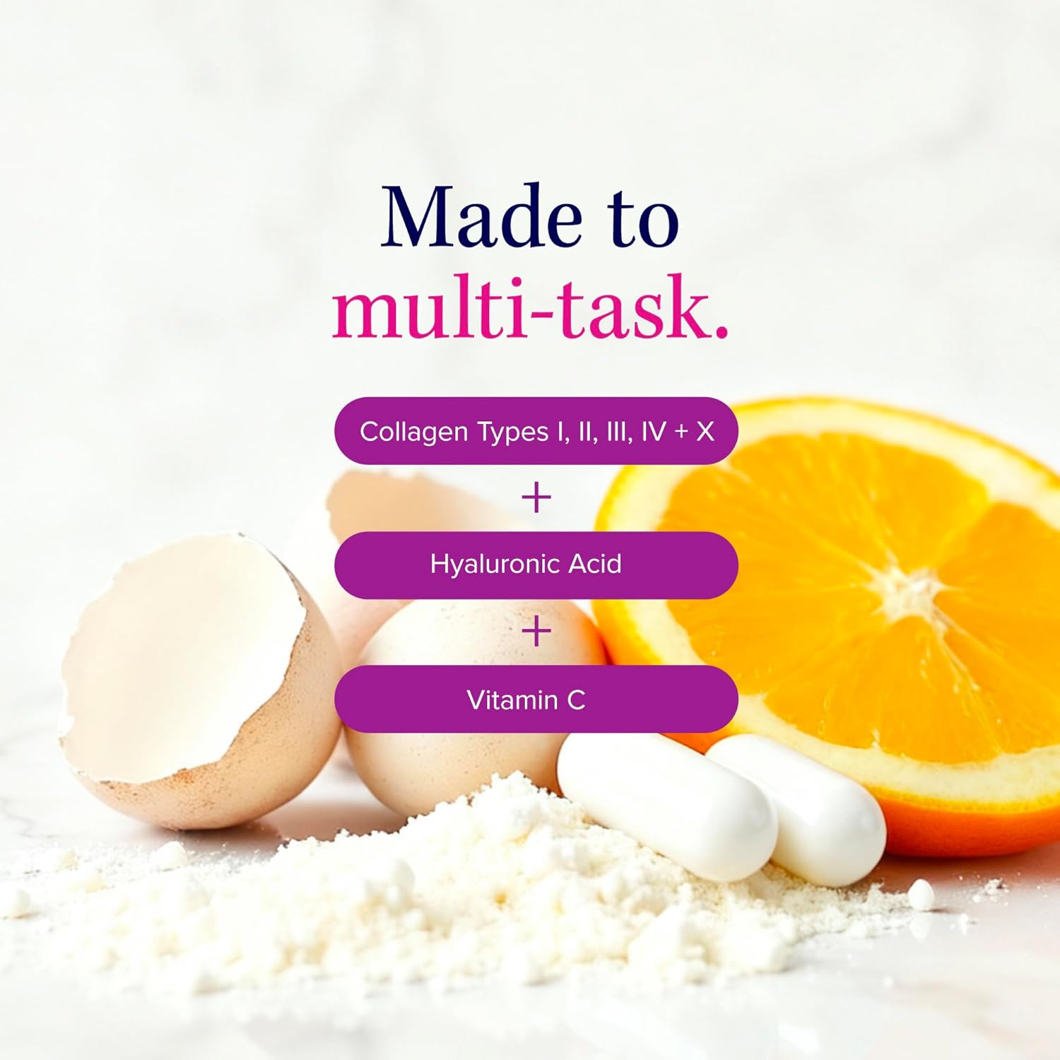 Glowing Skin; Types I, III & V Collagen have been shown to help reduce cellulite and wrinkles while supporting skin elasticity and hydration eggshell.