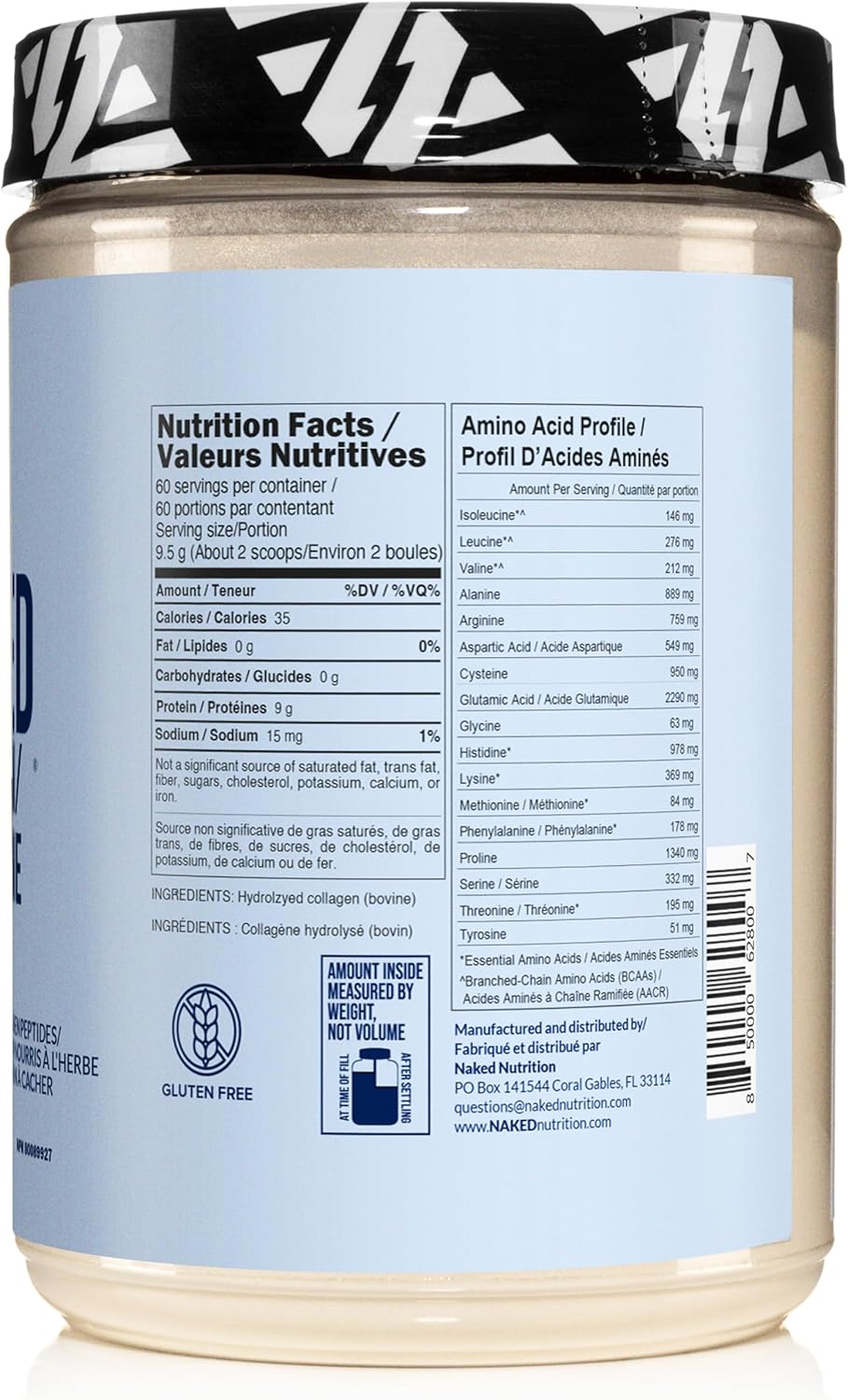 WHY NAKED COLLAGEN? Our pure collagen peptides powder benefits your overall health, appearance and workout recovery. Like our best-selling Naked Whey protein produced from California cows, we have not cut corners on sourcing to pad the bottom-line. Our bovine collagen powder is sourced from pasture raised European cows that eat a natural grass diet. Bigger collagen protein brands you may see on Amazon or in Whole Foods use a cheaper source from South American and do not mix as well.