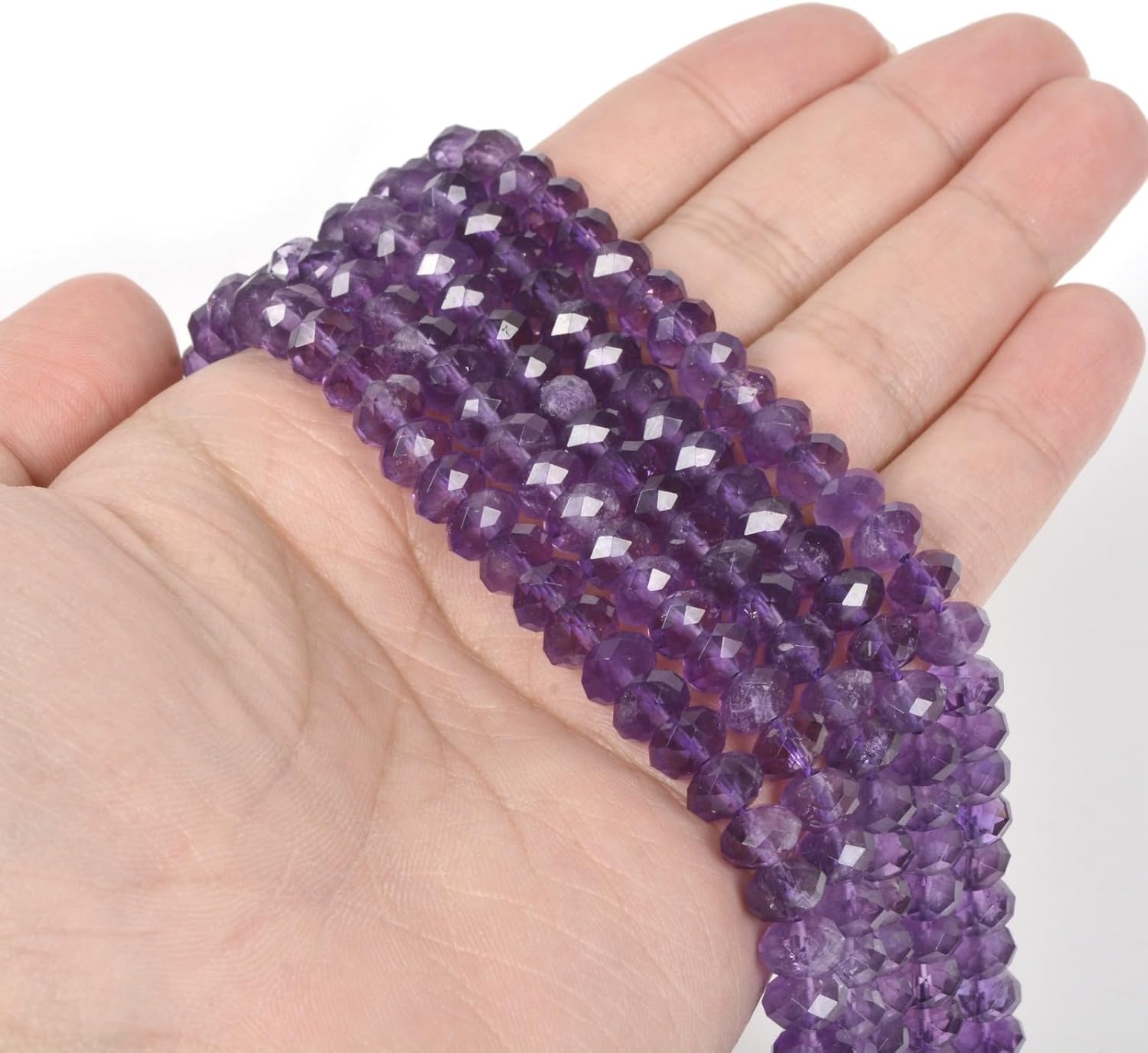 Product Summary: Natural AA Amethyst 8mm Faceted Rondelle Spacer Loose Beads 16 Inch for Jewelry Making Beads