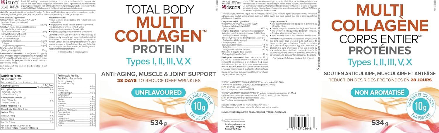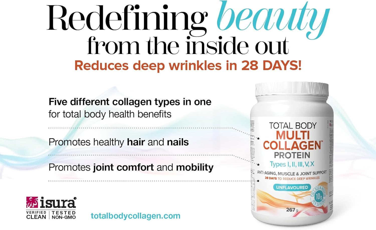 Natural Factors Total Body Multi Collagen Protein,534 g, Unflavoured, 10g of Hydrolyzed Collagen per Scoop, 48 Servings, Combines 5 Types of Collagen, Anti-Aging, Muscle & Joint Support, 28 Days to Reduce Wrinkles, Keto & Paleo Friendly, Proudly Canadian