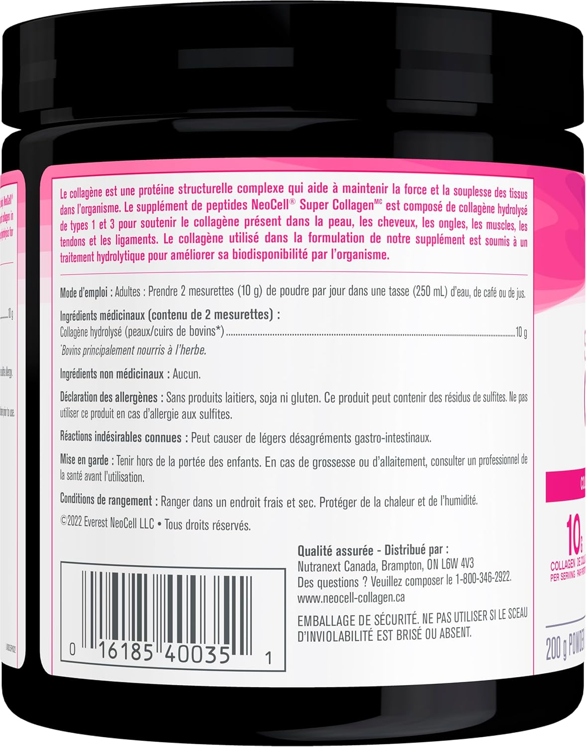 Illuminate your inner beauty with Neocell Super Collagen Powder, type 1 and type 3 hydrolyzed collagen peptides. Collagen is a complex structural protein that maintains strength and flexibility throughout the body. As we age, collagen production in our bodies starts to decline. Neocell collagen supplements support healthy collagen formation for youthful skin, healthy hair and nails. Even better, Neocell Super Collagen Peptides features hydrolyzed collagen (collagen that’s broken down into smaller molecules, called peptides). This hydrolyzed form gives your body the building blocks to create its own collagen, as well as other proteins such as keratin, which your hair loves. Formulated to support radiant beauty from the inside out, Neocell Super Collagen is, non-GMO, and does not contain lactose, soy or gluten. Super Collagen Peptides powder is unflavored and makes a great addition to your morning smoothie, in a warm or cold beverage, or added to your favorite recipe. For best results take Neocell Super Collagen every morning.