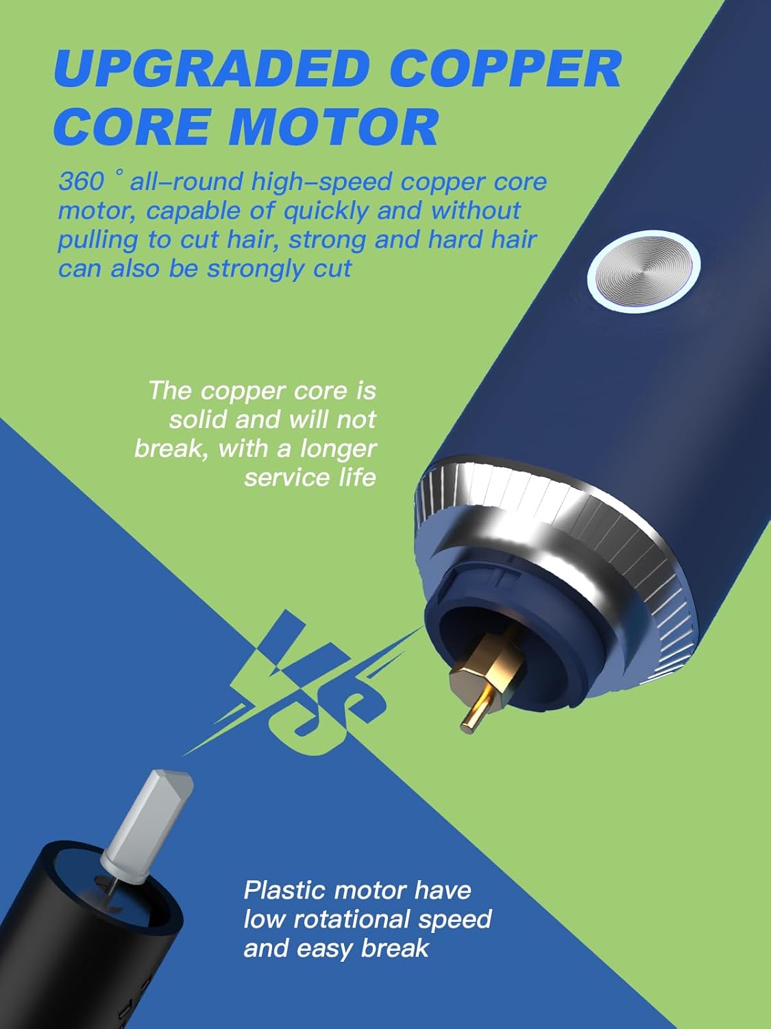【Powerful Copper Core Motor & Painless】: This nose hair trimmer uses a newly upgraded copper core motor, which can rotate up to 13000 RPM, much faster than regular plastic motor nose hair trimmers.
