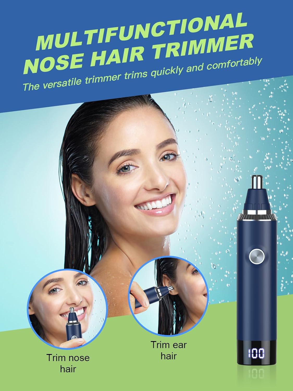 Nose Hair Trimmers for Men,2025 Rechargeable Nose Hair Trimmer with LED Display,2 IN 1 Painless Multifunctional Ear and Nose Hair Trimmer with IPX7 Waterproof Dual Edge Blades-Blue