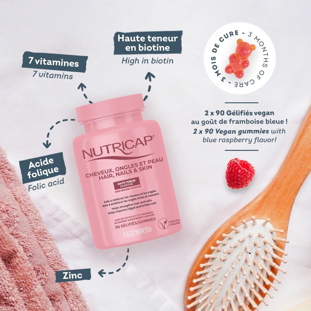 HAIR CARE BENEFITS: Our formula supports hair growth by restoring normal cell function and promoting noticeable hair volume. Nutricap Gummies offer EXTRA benefits beyond hair, skin, and nails vitamins – they help boost the immune system and collagen production, benefiting bones, cartilage, teeth, and gums. With biotin and zinc, you can enjoy glowing skin, stronger nails, and faster-growing hair.
