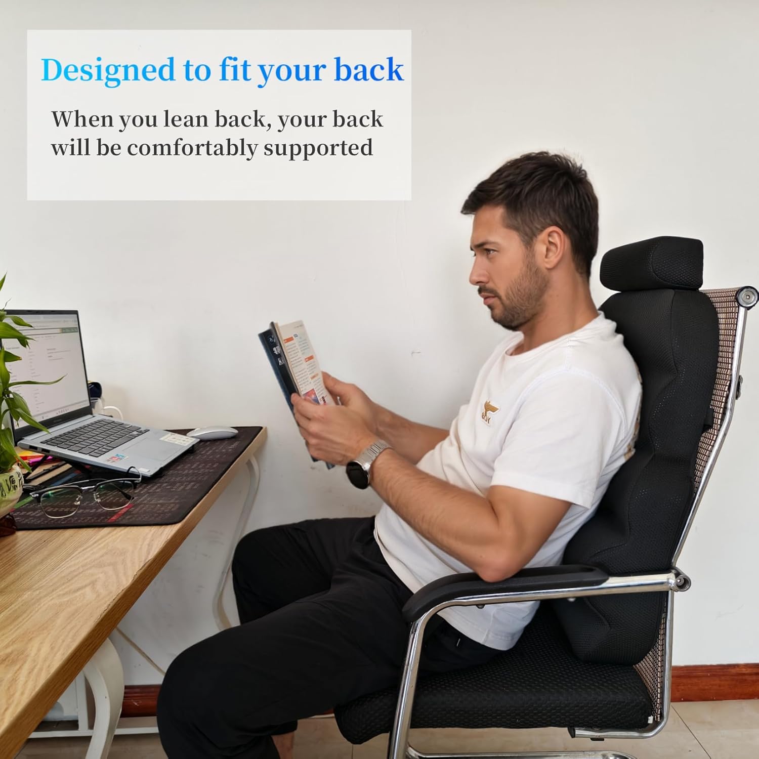 Office Chair Support Pillow, Fully Support The Whole Back, Relieve Fatigue – Memory Foam Lumbar Support Pillow for Office Chairs, Gaming Chairs, Car Seats, Wheelchairs, Black