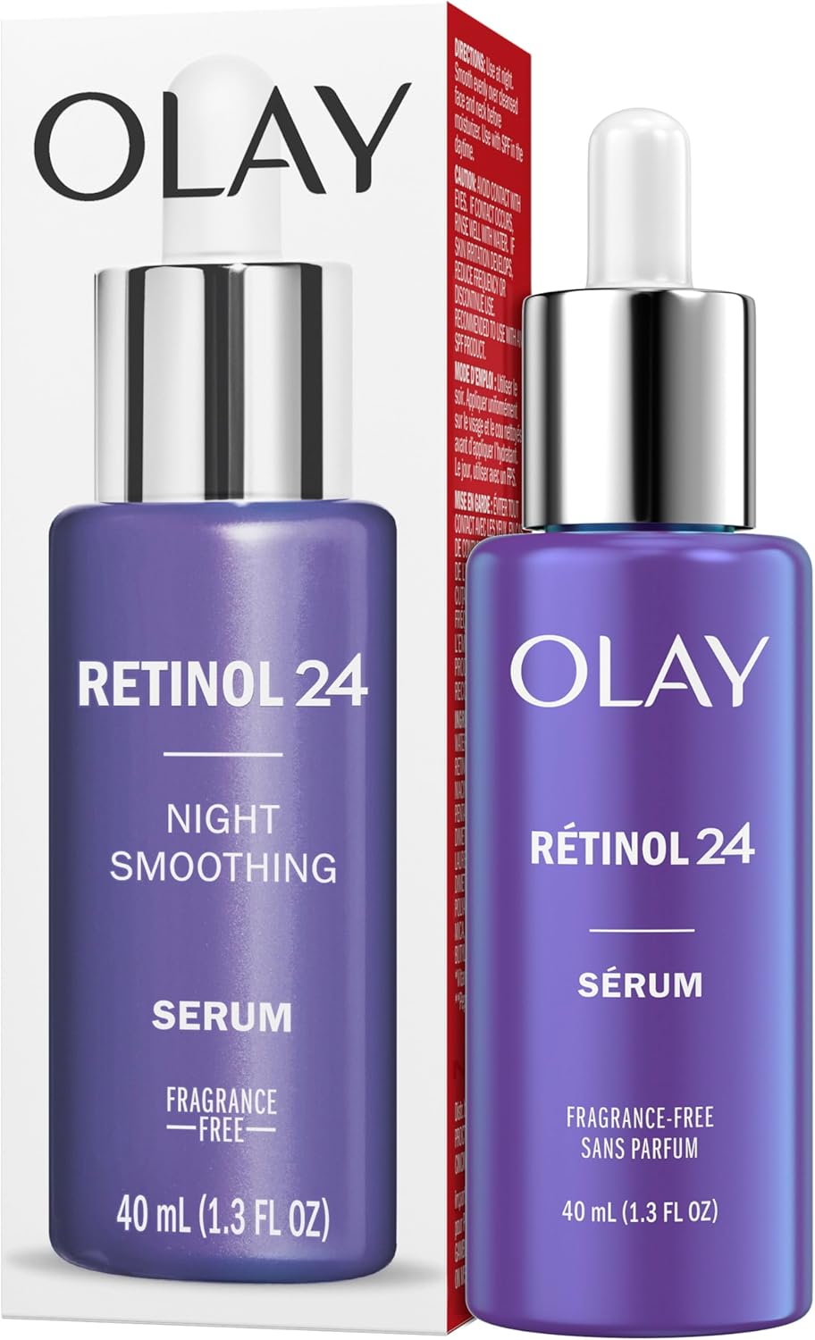 Olay Regenerist Retinol 24 Night Facial Serum penetrates deep into skin’s surface layers. Our proprietary blend of Vitamin B3 + Retinoid complex hydrates skin for 24 hours. Use for 28 days to see visible improvements in fine lines & wrinkles, smoothness, brightness, firming, dark spots, and pores. This formula is fragrance free and free of dyes, phthalates and mineral oil. It absorbs quickly and goes deep into your skin’s surface so you wake up every morning to younger-looking, radiant skin. Use Olay daily for 28 days and see true skin transformation. We guarantee you’ll love your OLAY product! If you are not satisfied, we’ll give you your money back via a prepaid card. Must submit within 60 days of purchase.