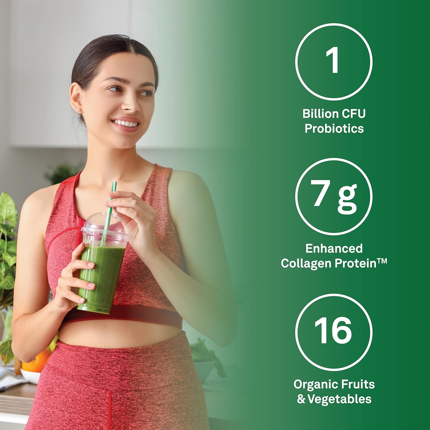 ANTIOXIDANT AND MUSCLE SUPPORT: The combination of organic greens and collagen helps prevent oxidative damage and supports gut health