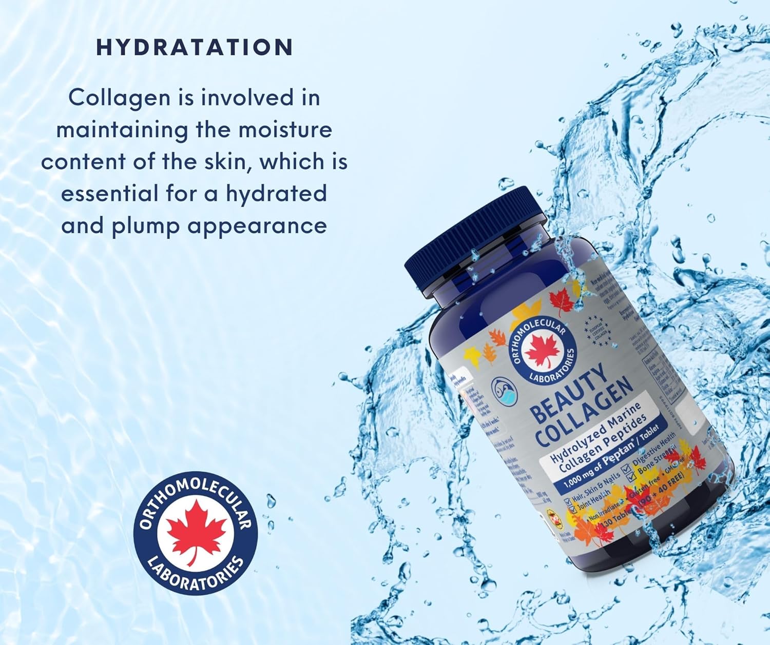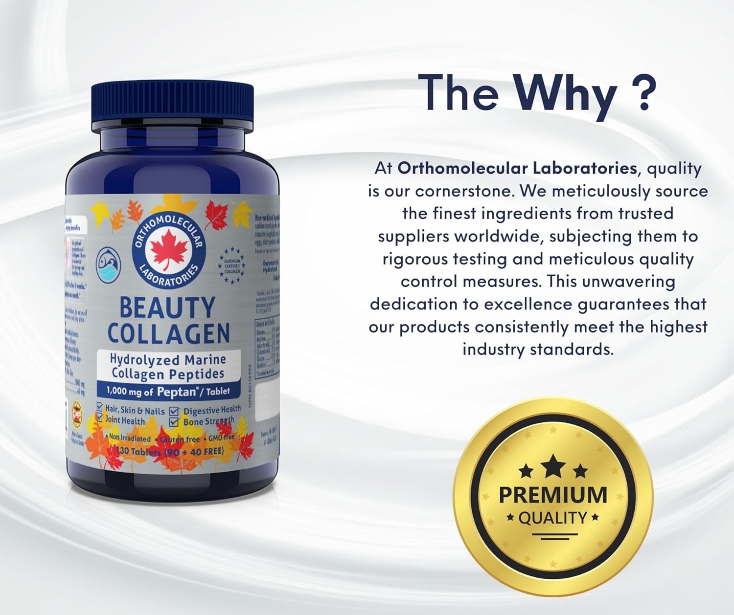Orthomolecular Laboratories – Beauty Collagen Hydrolyzed Marine Collagen Peptides 1000mg, 130 Tablets 32-Day Supply – Vitamins for Bone Strength, Digestive Health, Joint Health, Hair, Skin and Nails