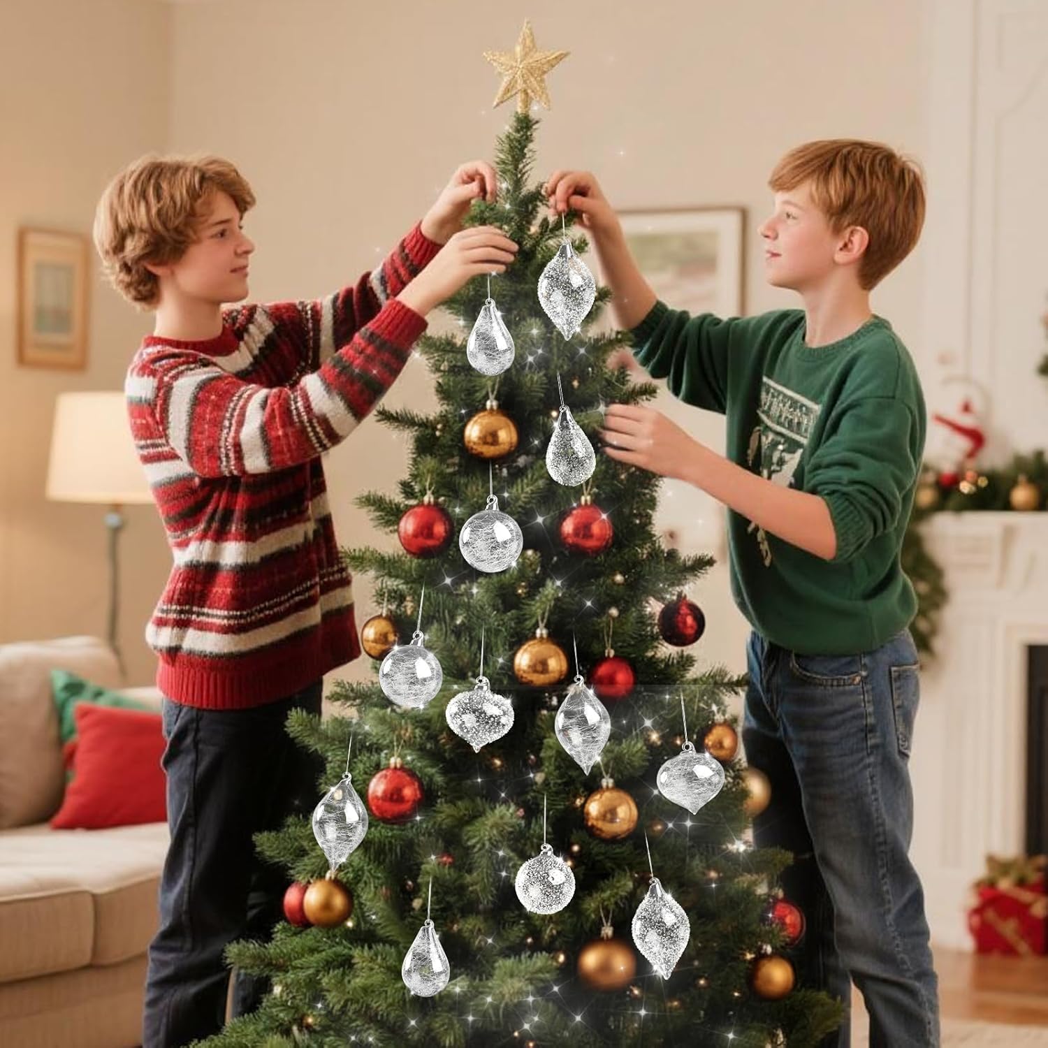Premium Glass Hanging Ornaments:This clear glass ball ornaments set includes 24 premium glass ornaments in assorted sizes and shapes, each demonstrating superior craftsmanship and aesthetic appeal, distinct from conventional plastic or acrylic alternatives. And these teardrop ball ornaments measure from 3.5 to 5 inches in size. The cool, smooth texture and satisfying weight elevate your holiday setup with a true sense of quality and sophistication