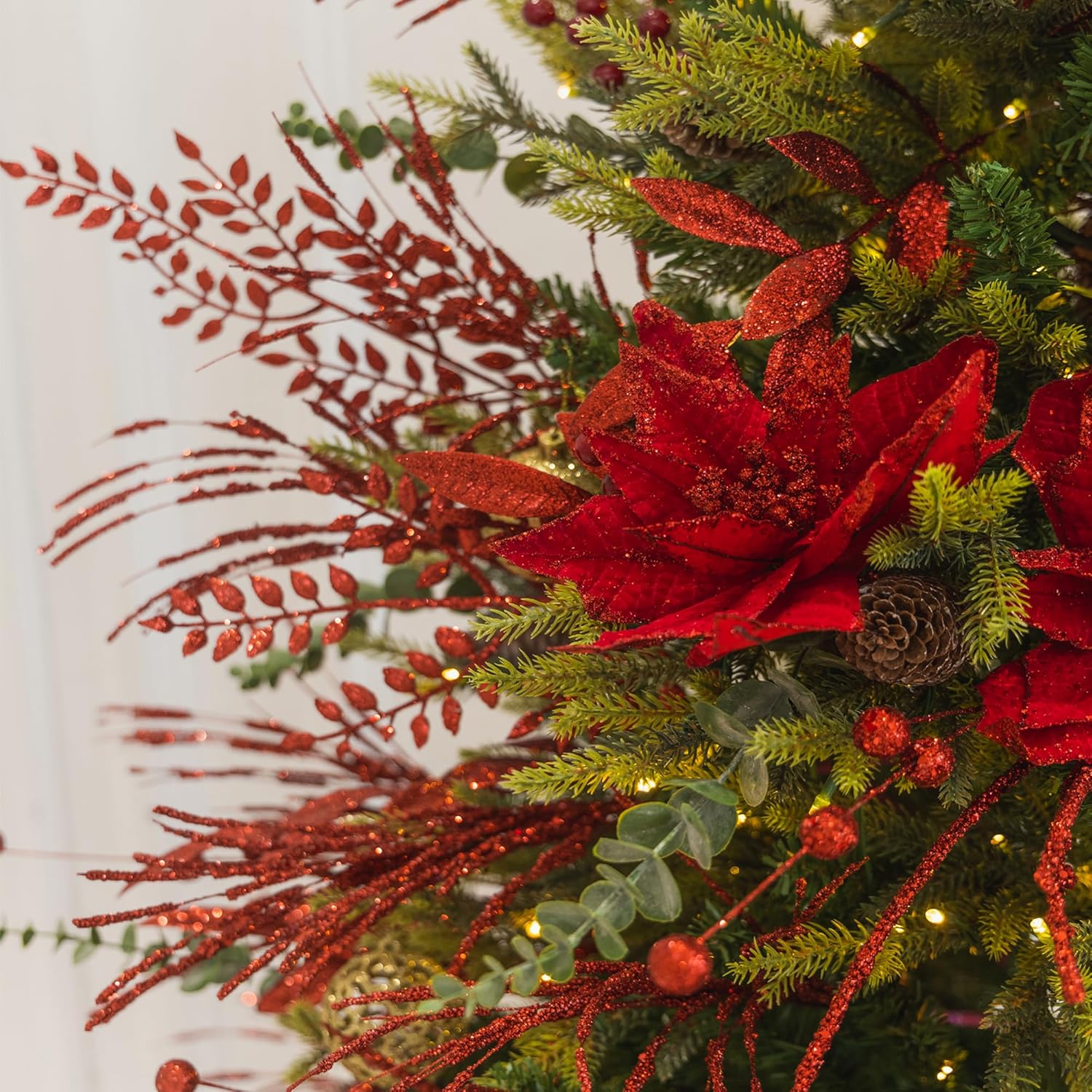 【Multi-purpose】: These sparkling glitter picks are perfect for Christmas tree decorations, floral arrangements, holiday centerpieces, vases, New Year celebrations, weddings, and home decor.