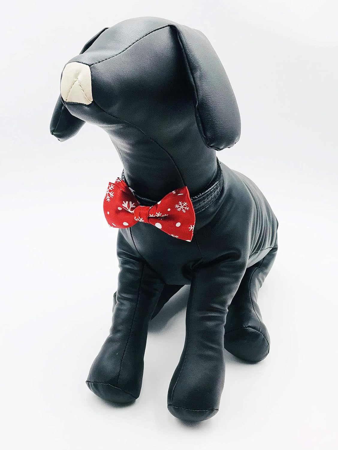 Customers love these dog bow ties for their adorable designs, particularly for Christmas pug puppies, and appreciate their quality, easy collar attachment, and good value. The size is suitable for medium to large dogs, and customers find them perfect for every holiday, with great colors. While some customers find them very durable, others report that they start to fray after a few days.